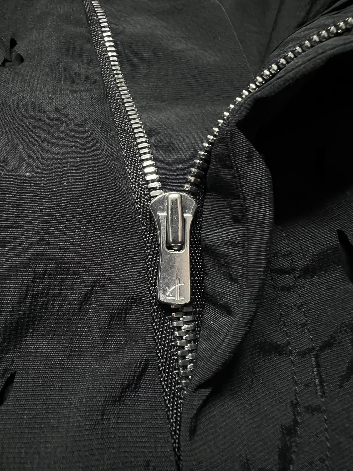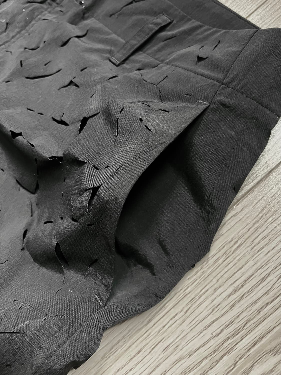 주름진 스트레치 나일론 태피터 팬츠. 전체에 레이저 컷 패턴 적용. 벨트 고리 ykk excella 지퍼 플라이 투 포켓 스타일링 전체 안감 처리 6.0 컬렉션의 일부 제품입니다. XL 허리단면 46cm 밑위 33cm 아웃심 112.5cm 밑단단면 24cm 색상: 블랙 (공급처 기준) 겉감 1: 나일론 95%, 폴리우레탄 5% 안감: 면 67%, 나일론 28%, 폴리우레탄 5% 제조국: 대한민국