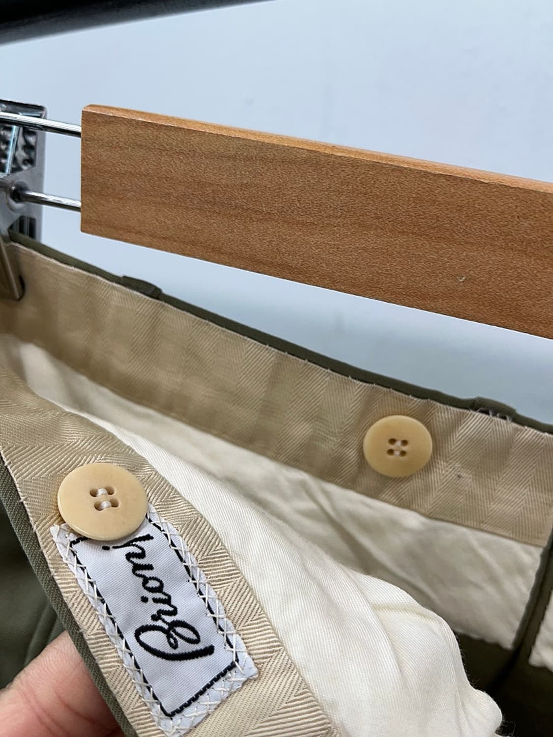 브리오니 사이즈 31-32 권장 총장 98 정품 브리오니 클래식 팬츠 디자인과 색상 깔끔하고 이뻐요 어느옷이랑도 매치하기 좋아요 이태리 하이앤드 투턱 클래식팬츠 카키 흰티에도 매치하기 좋은옷입니다~ 고가의제품