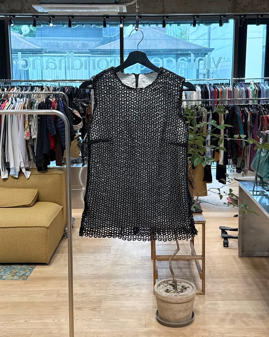 피에르 발망 블랙 크로셰 슬리브리스 사이즈 24/38 어깨 34 가슴 44 기장 62