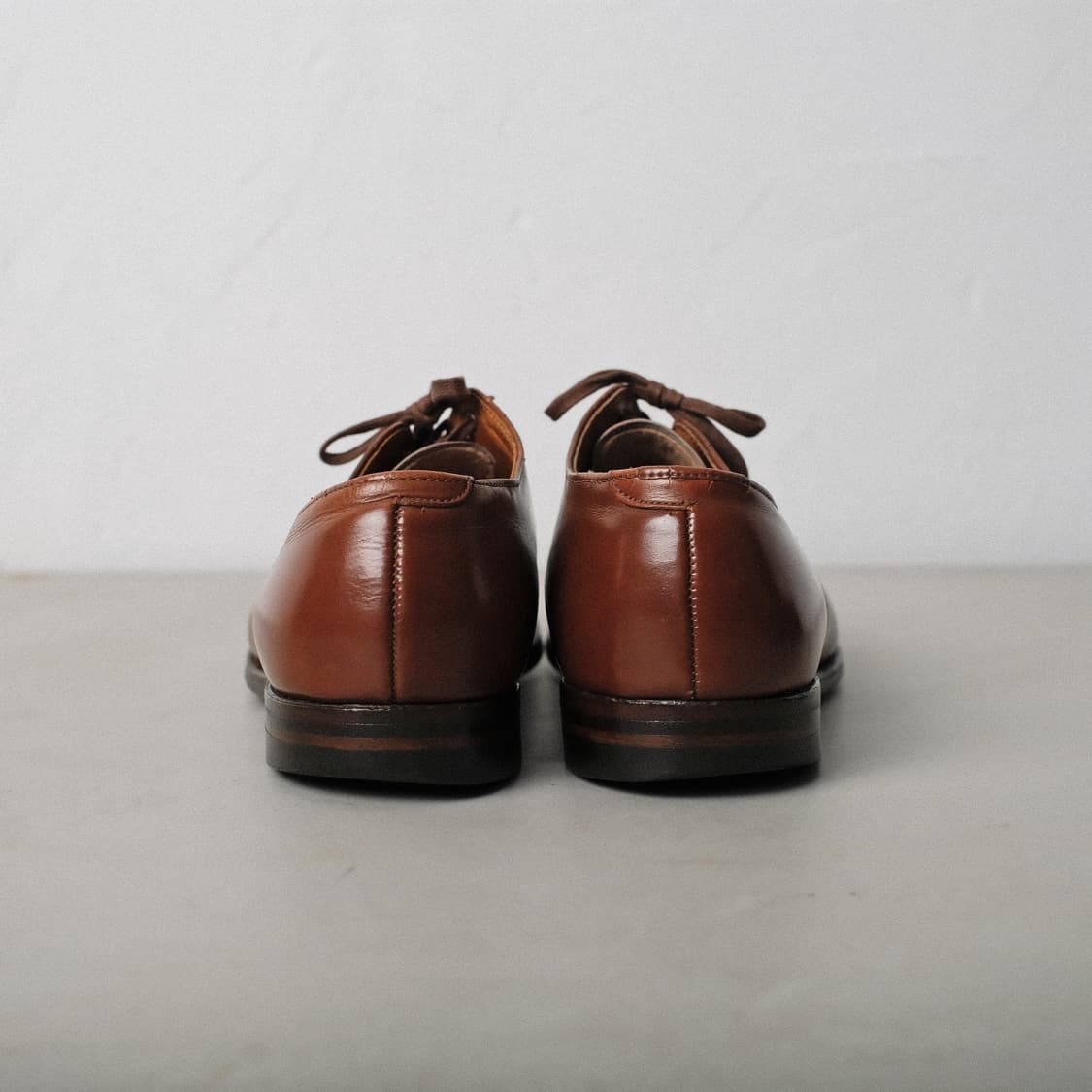 #Alden ······ #알든4900 브라운 카프 플레인토 더비 입니다. 379X 라스트. 통칭 '밀리터리 라스트'라고 불리며 1900년대 초에 개발된 군용 목형인 알든의 클래식 라스트. 아치와 뒷꿈치를 잘 잡아주는 동시에 발의 앞 부분은 편안한 공간감이 있어 유니크한 라스트입니다. 군화에서 흔히 보이는 플레인토 스타일이 적용되어 밀리터리 라스트와의 조합을 극대화 시킵니다. 싱글레더 솔의 경쾌한 무게감과 오리지널파츠인 알든에서 착용감을 고려한 텅패드 사양까지 챙겨가시면 좋습니다. 국내에는 잘 없는 알든을 소개해드립니다. 만나보시길 감사합니다 :) ······ - Alden 4900 Brown Calfskin Plain Toe Dover - Size : 8D [379X last / 추천 사이즈 260-265 ] - Condition : 8/10 [신발 단품] - Price : 48.9 ······ - Item Code : 6885 - 업로드 된것들 이외의 더 많은 제품들은 서울 문래에 위치한 '모이치샵' 쇼룸에서 직접 보실 수 있습니다.