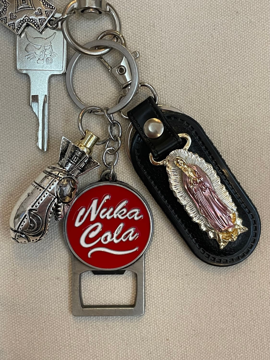 ๐ ์ ํ ์ค๋ช : ๋ ํธ๋ก ๊ฐ์ฑ๊ณผ ๋ ํนํ ์์ง์ด ์ด์ฐ๋ฌ์ง, ์ ๋ํฌํ ๋งค๋ ฅ์ ๋ฉํฐ ์ฐธ ํค๋ง์ ๋๋ค. ์ผ์ ์์์ ๊ฐ์ฑ์ ํํํ๊ณ ์ถ์ ์ด๋ค์๊ฒ ์๋ฒฝํ ์์ดํ ! ๐ ๊ตฌ์ฑ ์ฐธ ์ค๋ช : โขNuka Cola ๋ณ๋ฐ๊ฐ ์ฐธ ๊ฒ์ Fallout ์๋ฆฌ์ฆ์์ ์๊ฐ์ ๋ฐ์ ๋นํฐ์งํ ๋๋์ ๋ ๋ ์บก ๋ณ๋ฐ๊ฐ. ์ค์ฉ์ฑ๊ณผ ๋์์ธ์ ๋์์ ๊ฐ์ถ ๋งค๋ ฅ ํฌ์ธํธ! โข์์ ์๋ฅํ ์ฐธ ๊ฐ๋ ฌํ ์กด์ฌ๊ฐ์ ์ฃผ๋ ๋ํ ์ผํ ๊ธ์ ์๋ฅํ ์ฅ์. ์คํธ๋ฆฟ ๋ฌด๋์ ๋ฐ๋ฆฌํฐ๋ฆฌ ๊ฐ์ฑ์ ๋ํด์ค๋๋ค. โข์ฑ๋ชจ ๋ง๋ฆฌ์ ์ฑ์ ์ฐธ ๋ธ๋ ๊ฐ์ฃฝ ํ๊ทธ์ ๋ถ์ฐฉ๋ ์ฑ๋ชจ ๋ง๋ฆฌ์ ๊ธ์ ์ฐธ. ์ ์ฑํ ๋๋๊ณผ ํจ๊ป ๋ณดํธ์ ์๋ฏธ๋ฅผ ๋ด์์ต๋๋ค. โข์ํฑ ์คํ์ผ ์ด์ ์ฐธ ๊ณ ์ ์ ์ธ ๋ฌธ์์ด ๊ฐ์ธ๋ ํค ๋ชจ์์ ๊ธ์ ์ฐธ. ๋ ํธ๋ก ๋ฌด๋๋ฅผ ๊ฐ์กฐํ๋ฉฐ ์ค์ ์ด์ ๋๋์ ์ค๋๋ค. โข๋์นญ์ ์ธ ํจํด์ด ๋๋ณด์ด๋ ์ ์ญ์ ํํ์ ๋ฉํ ์ฐธ. ์ฅ์์ฑ๊ณผ ๊ท ํ๋ฏธ์ ์ด์ ์ ๋ง์ถ ๋์์ธ์ ๋๋ค.