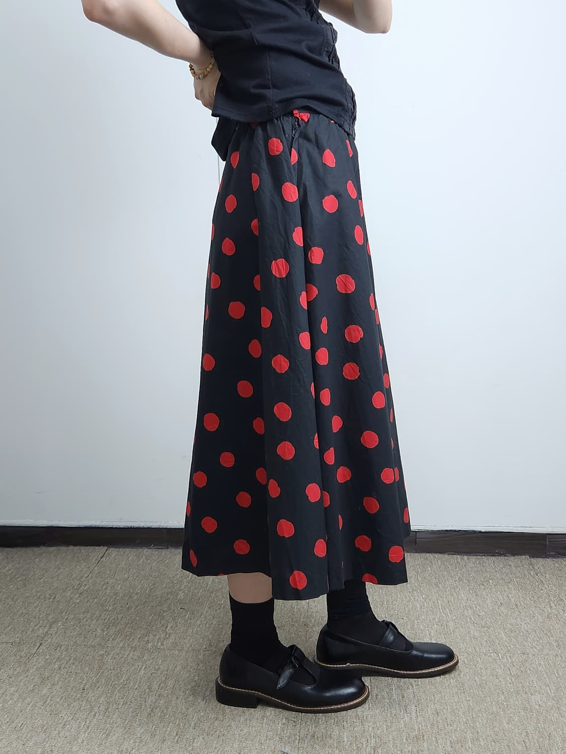 ✸허리(뒷밴딩) 32~ 총장 71 ✸도트 스커트 (완전 동그란 모양의 패턴이 아니라 더 귀여워요!) ✸실제론 쨍하지 않고 살짝 다크한 빨강 ✸안감 O ✸면 100 ✸157cm / 44~55 🍀notice🍀 ✸교환•환불•구매 후 취소가 어려우니 신중한 구매 부탁드립니다. ✸빈티지 특성 상 사용감•미처 발견하지 못한 미세 이염 등이 있을 수 있습니다. ✸재는 방식에 따라 1~3cm 오차 발생할 수 있으며, 이미지 색상 차이가 있을 수 있습니다.
