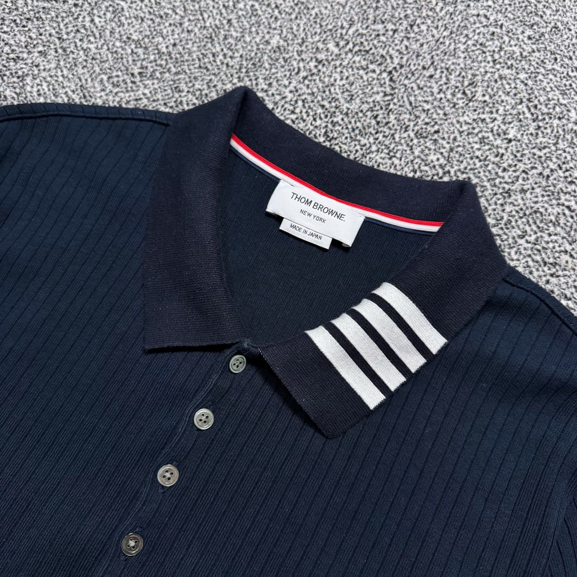 Name : 톰브라운 넥 사선카라 네이비컬러 니트 반팔티 :) • Size(cm) : [ 4 ] (총장:71 가슴단면:57 ) • Price : [ 39.0 ]