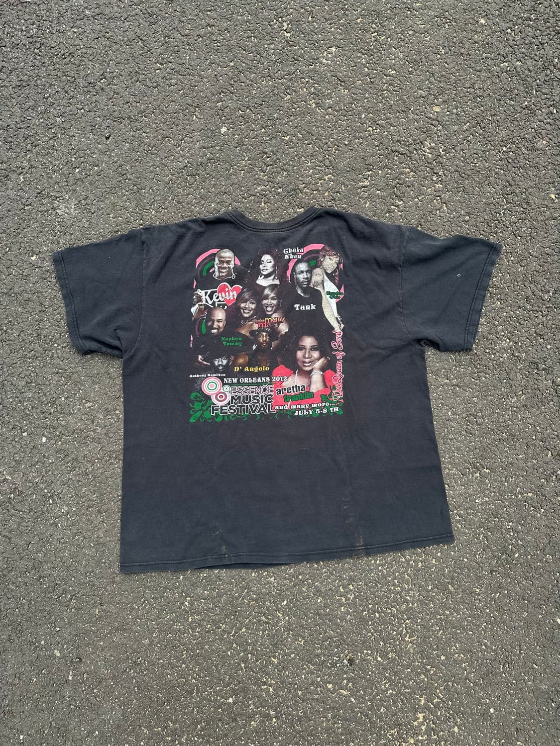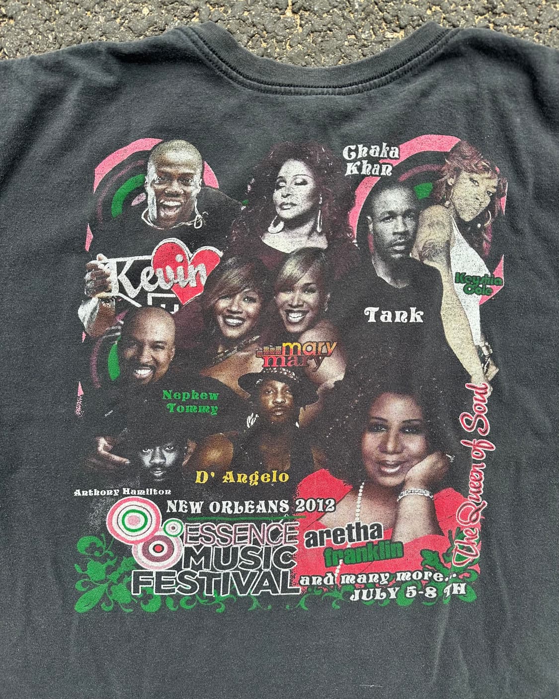 표기사이즈 - 2XL 실측 - 가슴: 61 어깨: 55 총장: 66 (CM) 컨디션 - 6/10 미국의 에센스 뮤직 페스티벌 티셔츠입니다. 보통 R&B나 힙합, 흑인 음악을 하는 아티스트들이 참여하는 페스티벌로 2012년의 라인 업들이 있는 티셔츠입니다. 메리 제이 블라이즈, 디앤젤로 등등 다양한 아티스트 들이 참여한 제품입니다. 겨드랑이 터짐 존재합니다.