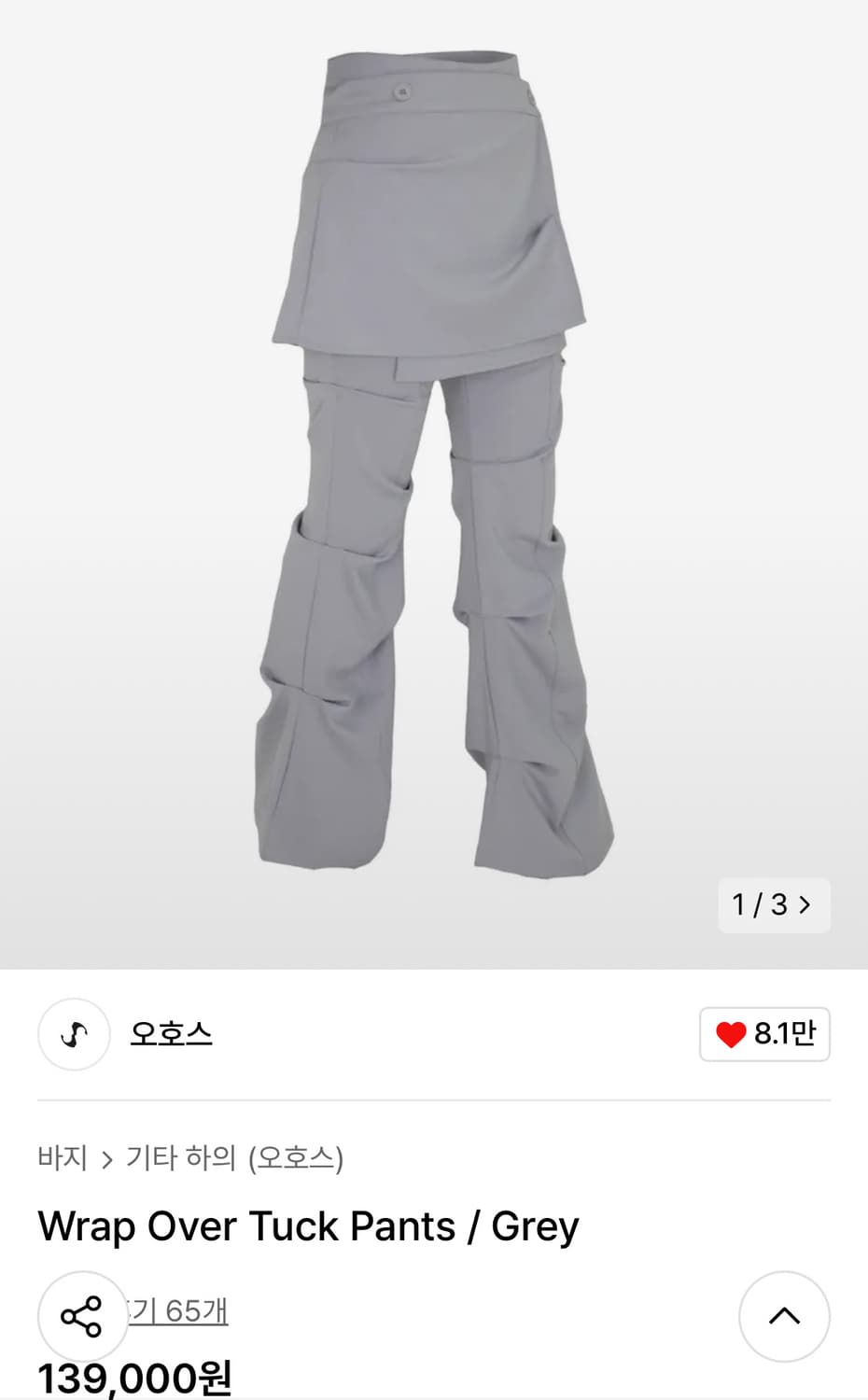 코이세이오 라운드 핀턱 팬츠+폴딩 언밸런스 스커트 세트 차콜
