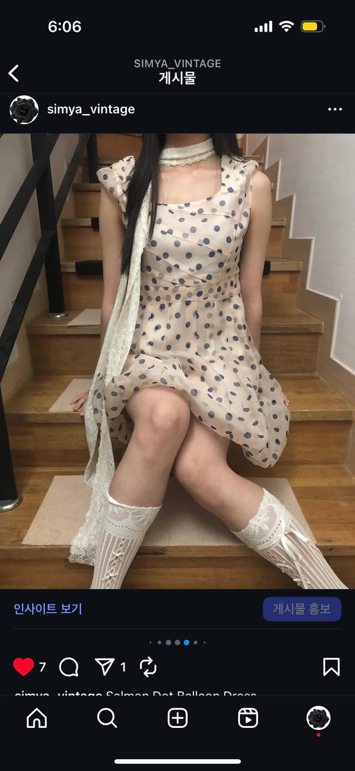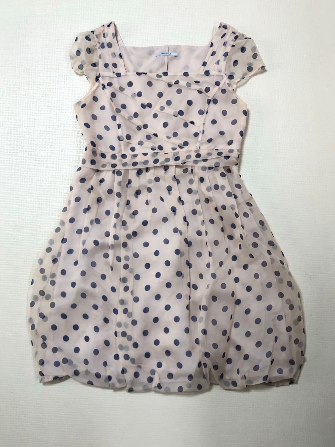 Salmon Dot Balloon Dress Price : 2.8 - 도트 패턴과 벌룬 핏 실루엣이 매력적인 살몬 컬러의 원피스 입니다. 사진과 같이 미세이염 몇 군데 존재합니닷 • 가슴 단면 40 • 총장 89