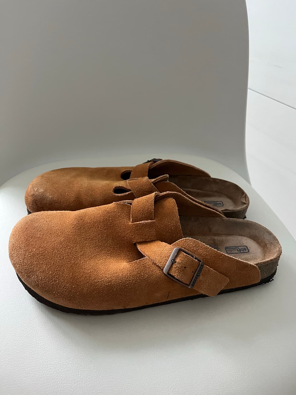 버켄스탁 카멜컬러 제품이고 상태는 조금 얼룩 말고는 아주 좋습니다 사이즈는 290이지만 스트랩 조이면 270까지는 아무런 문제 없이 편하게 착용 가능합니다. (급전이 필요로 급처)