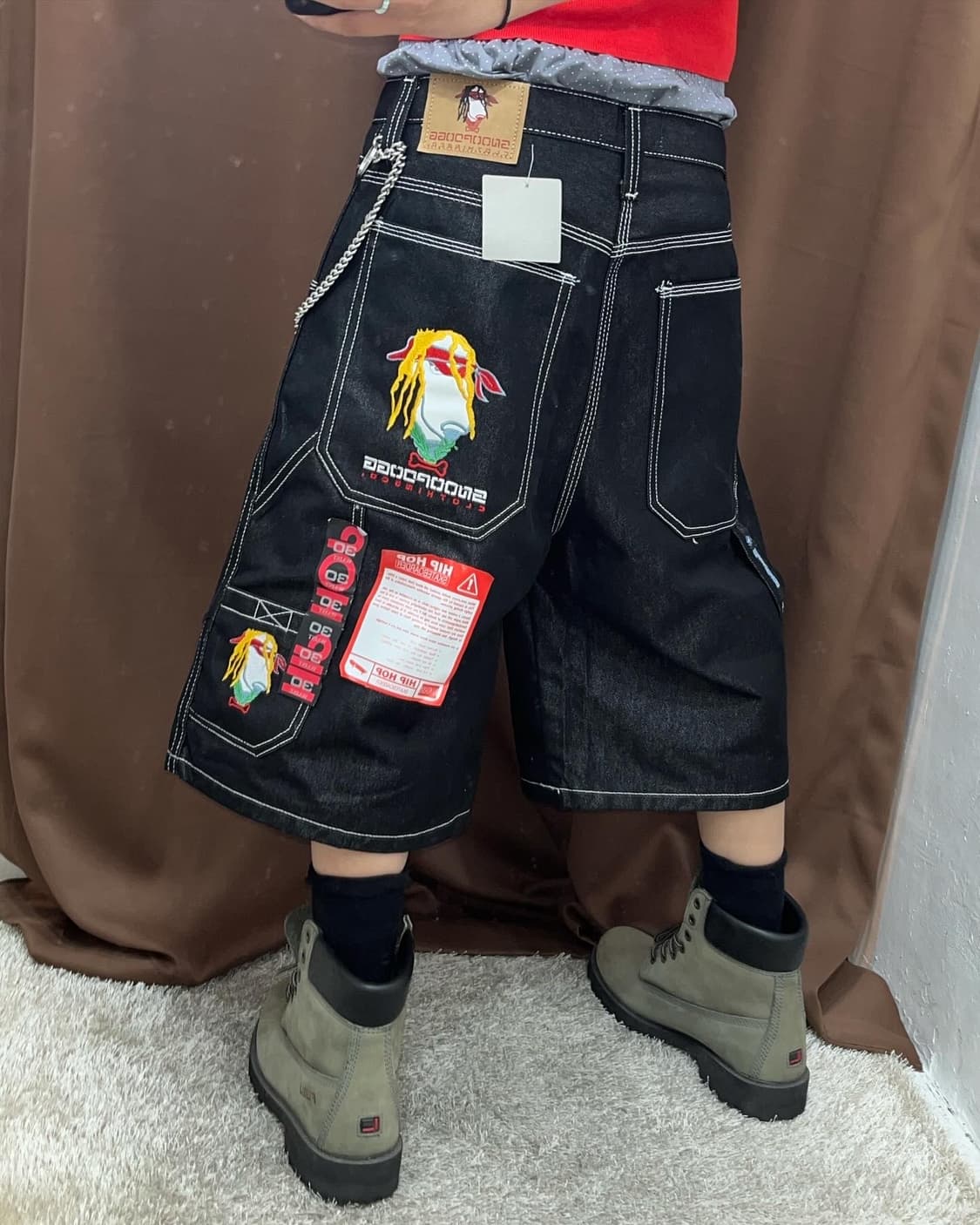 Today Product 2 #set #세트 < Set 1 - Vivienne West Wood Set > ♥️ 세트 2 ♥️ - 단품 구매가능 상의 - Vivienne West Wood Red Label Short Sleeves Cardigan 가슴단면 53(스판끼있음 더 늘어남) / 총장 53 cm 하의 - Hip-Hop Bermuda Pants 허리단면 40 / 총장 60 cm Acc - Kitty Bandana & Chain ¥ 약간의 사용감 있으나 좋은 컨디션 유지중 입니다 ( 9.5 / 10 ) ¥ 😵💫 빈티지 특성상 미처 발견하지 못한 오염 있을 수 있습니디😵💫 Contact DM ! ❤️ . . .