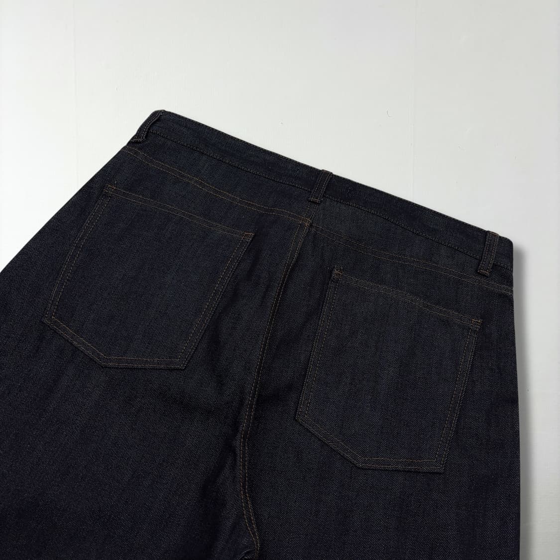 Beslow wide one tuck selvedge indigo denim pants (34) 택유실 새상품 Size : 34 inch 허리단면 43.5 총기장 112 허벅지 36 밑단 24.5 밑위 36