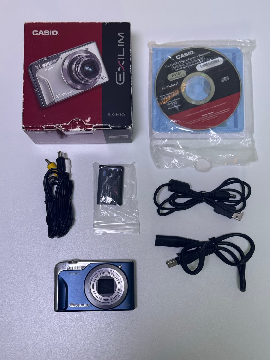 카시오 EXILIM EX-H10 (Hi-Zoom) 지금 보기엔 너무 귀엽지만, 출시 당시엔 ‘하이엔드 콤팩트 디카’로 주목받았던 EX-H10! 얇은 바디에 무려 10배 광학 줌, 1회 충전으로 최대 1,000컷까지 촬영 가능한 ‘작고 강한’ 카메라예요. 🔍 광학 10배 줌 / 12.1MP 화소 📺 3.0인치 LCD / 손떨림 보정 🎥 HD 동영상 / 오토모드 지원 📦 정품 박스 + CD + 배터리 + 케이블 포함 (풀박급) ⠀