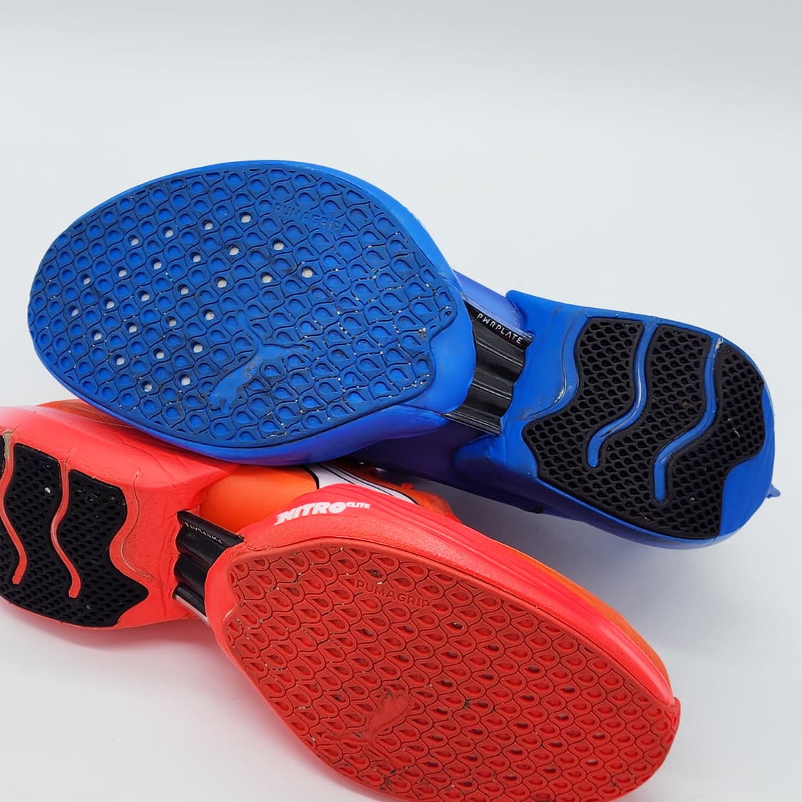 사이즈 275 푸마의 상급 런닝화 모델인 FAST-R 나이트로 엘리트 레드 블루 입니다. https://web.croket.co.kr/seller/product/6783f74bee1b9edd25bcae5c NITRO ELITE FOAM 높은 반발성과 충격을 흡수하는 쿠션성, 경량화를 성공한 푸마의 최신 폼 기술 NITRO FOAM에 단거리 스파이크의 아웃솔에도 사용되는 고반발 특수 소재를 더해, 부드러운 쿠션성을 유지하면서 높은 반발성을 실현합니다. PWRPLATE 지면에 더 가까운 위치에 카본 소재의 플레이트를 배치하여 효율적인 추진력을 제공합니다. PUMAGRIPLT 얇고 내구성 있는 고무를 사용한 PUMAGRIPLT가 다양한 지면에 대응하며 뛰어난 접지력을 발휘합니다. PWRTAPE 지면에 더 가까운 위치에 배치하여 미드솔을 안정시키고 에너지 전달을 극대화하여 효율적인 추진력을 제공합니다. 무게: 약 194g (27cm) 제품에 관한 설명인데 보시면 좋을 듯 합니다. ^^ 자연스러운 사용감외 좋은 수준의 컨디션을 유지중입니다.