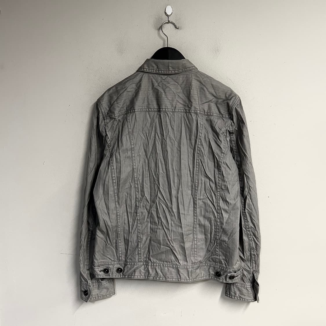TETE HOMME wrinkle denim jacket light gray - 데님 코튼 69%, 폴리에스테르 31% - 링클 가공 처리 - 전면부 양쪽 상단 플랩 포켓 - 전면부 양쪽 하단 세로 방향 지퍼 포켓 - 안주머니 디테일 - 투웨이 지퍼 Size: 7 어깨 44.5 가슴 52.5 팔기장 62.5 총장 61.5 Condition: 9/10