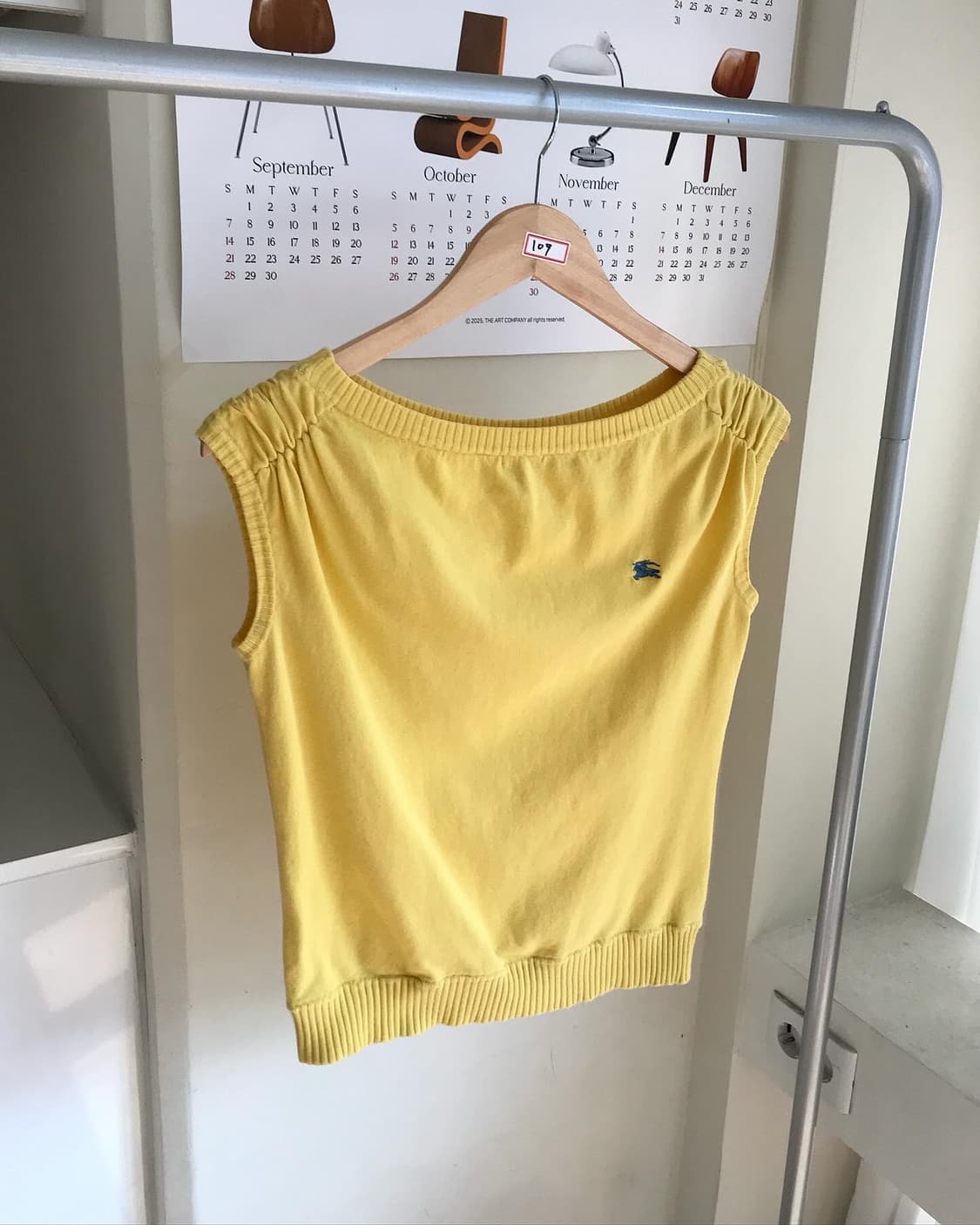 버버리 로고 오프숄더 슬리브리스 comment - 가슴 상단에 기마 로고가 자수로 들어가 있고 어깨에 걸치는 실루엣으로 입는 슬리브리스 입니다 숄더 부분이 셔링 밴딩 처리가 되어있어서 어깨 사이즈에 맞게 늘어나 편하게 착용 가능합니다 상태 또한 전체적으로 최상의 컨디션 유지 중이며 세탁이 완료된 제품이라 수령 후 바로 입으시면 됩니다 :-) size - 총장48 가슴45 어깨, 팔 밴딩 🧍🏻♀️모델 사이즈 55 - 161cm 50kg ( 측정 방법에 따라 1~3cm 오차가 있을 수 있습니다. ) condition - A fabric - cotton price - 59,000