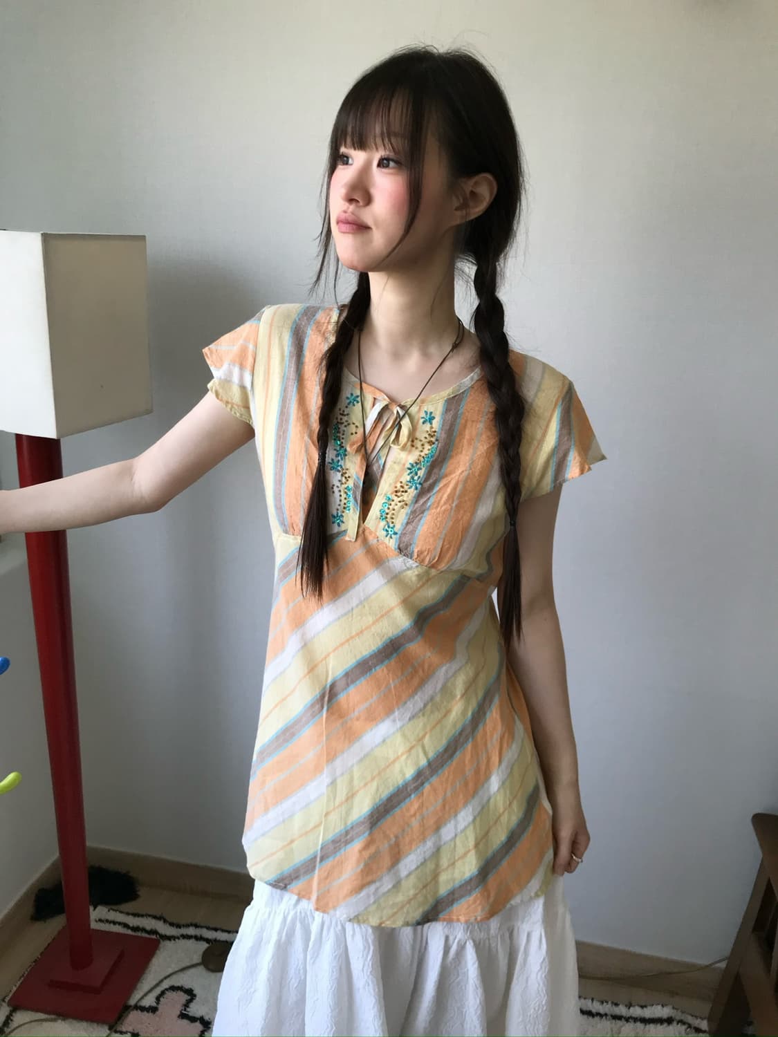 condition. C chest length 에스닉한 무드와 예쁜 컬러감와 탑 소개해드려요. 살짝 롱한 기장감의 탑이라 코디처럼 스커트, 편안한 팬츠와 매치해도 좋겠어요..* 여행 가서 입기도 좋을 것 같은… * insta @oyoyohaus * 중고 특성상 교환 및 환불 불가
