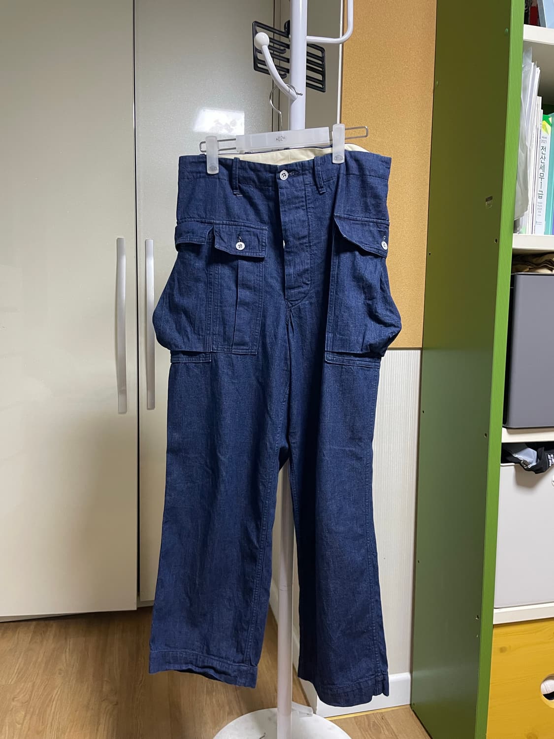 하버색 샴브레 밀리터리 팬츠입니다. 사이즈는 M사이즈이며, 샴브레이 원단으로 만들어져 편안하고 이쁘기 핏이 떨어집니다. 하자없이 깨끗하게 보관한 상태입니다. 문의주세요.