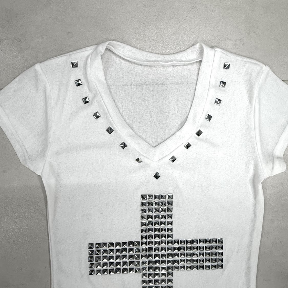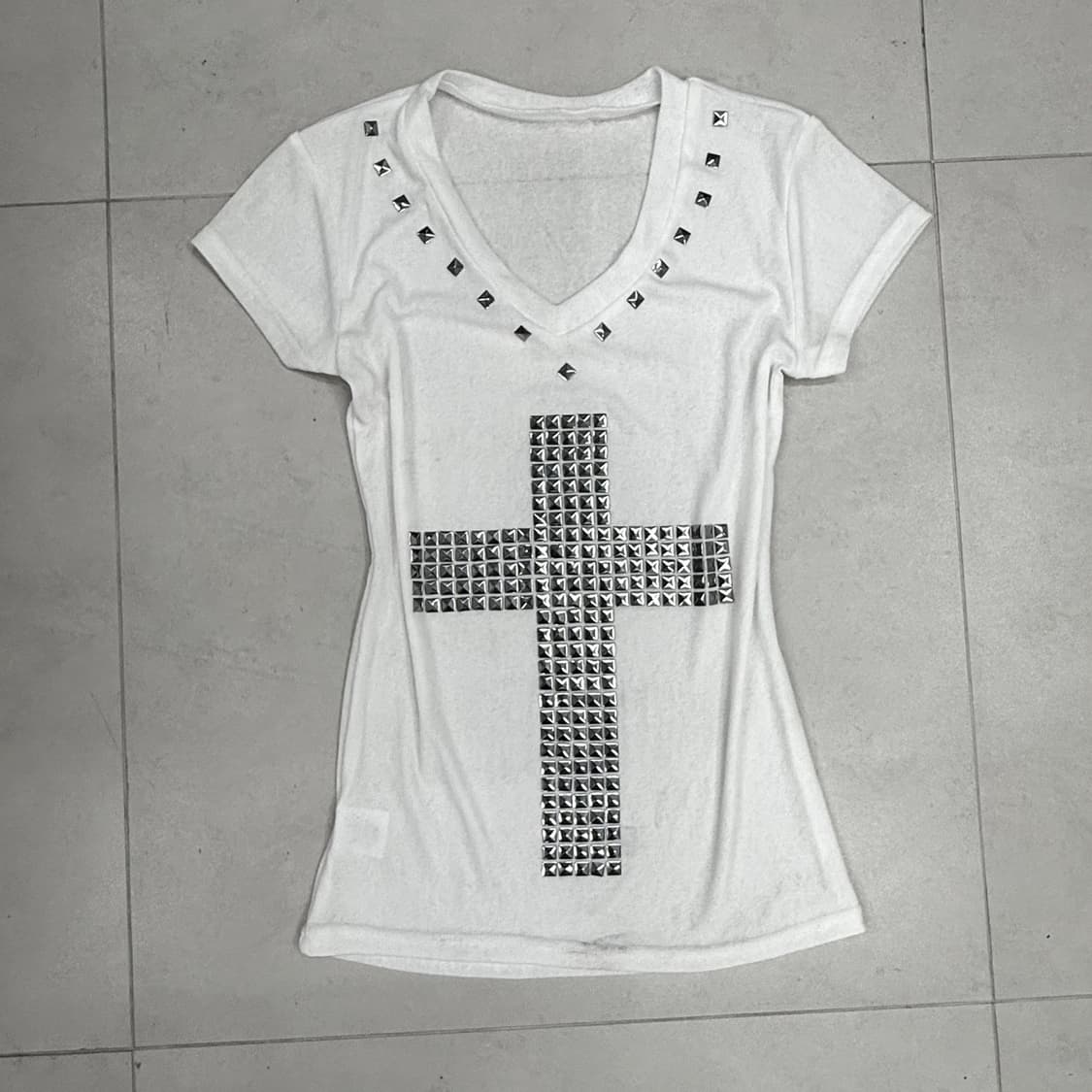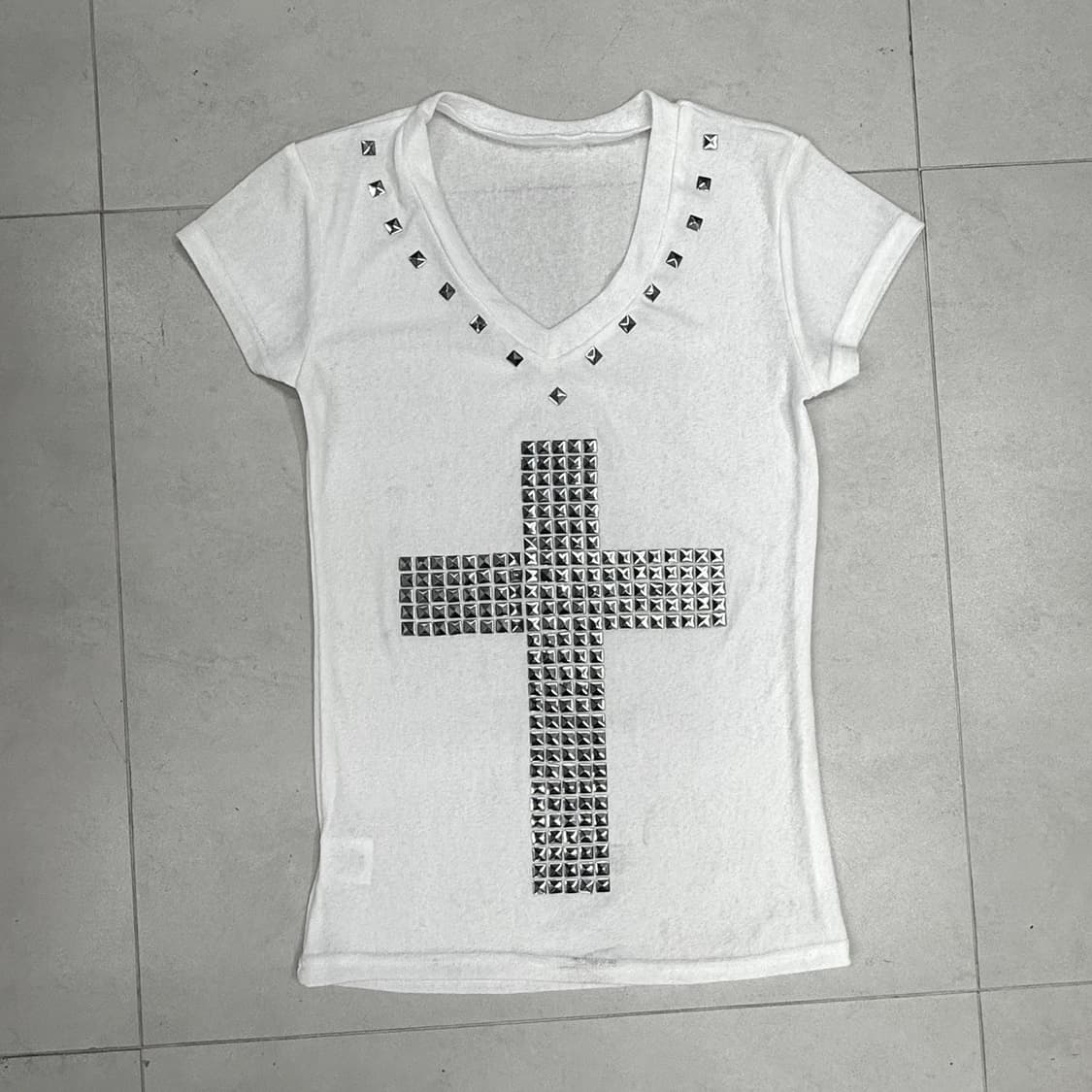 Punk stud cross t-shirt 펑크 스터드 크로스 반팔티 Shoulder: 37 Chest: 40 Sleeve: 13 Length: 65 #vintage
