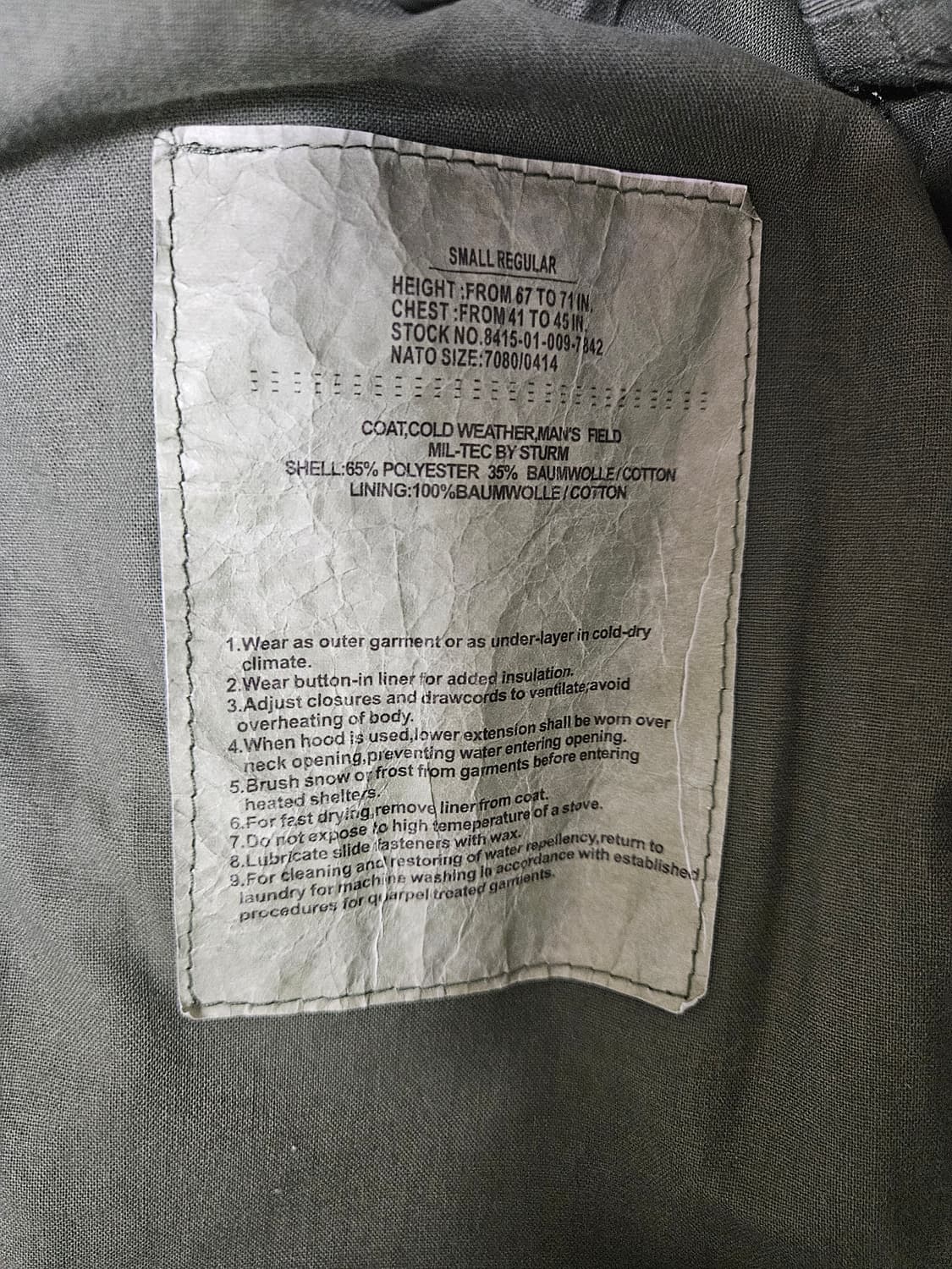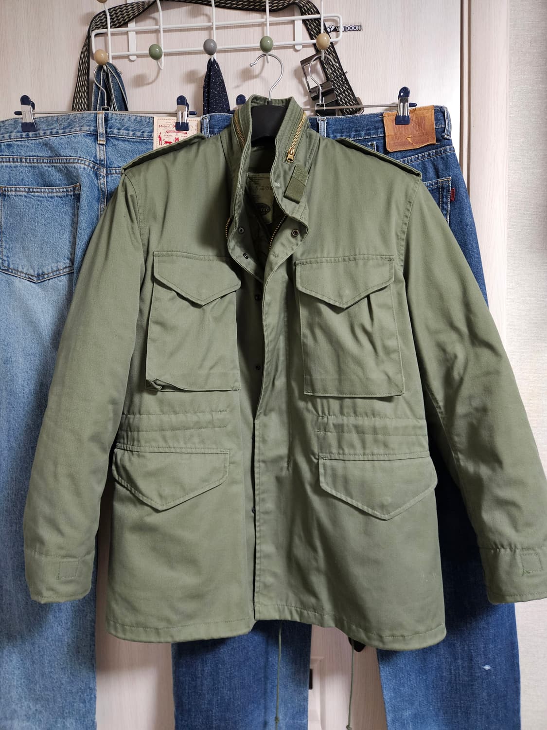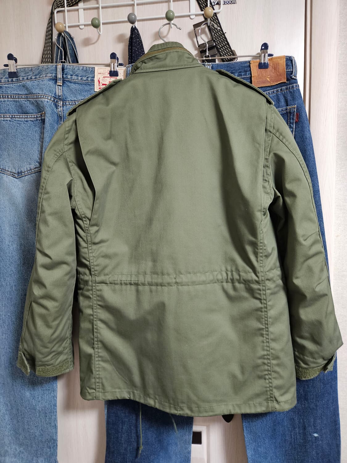 M65 필드자켓 밀턱사 제조. 내피포함. 상태는 신품급 2~3회 착용 스몰 레귤러 사이즈로 95 ~ 105 사이즈 가능. 크게 나옵니다. 인터넷이 정확하니 찾아보시는 것을 추천. 후드는 제거해놓았고. 이외에 벨크로 끈 단추 이상없습니다. 불편함은 없지만 취향이 존재하기에 이점 감안해 가격 측정했습니다. 내피는 결합해 놓았는데 사진필요하시면 드려요