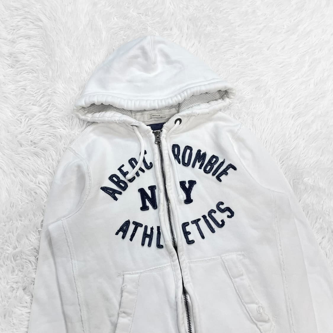 🍓아베크롬비 아치 로고 후드집업 화이트🍓 ▫️𝐒𝐢𝐳𝐞 : M 어깨 : 46 가슴 : 53 총장 : 63 ▫️𝐂𝐨𝐧𝐝𝐢𝐭𝐢𝐨𝐧 : 8/10 ◽️𝐏𝐫𝐢𝐜𝐞 : 5.9 ▫️𝐅𝐢𝐭𝐭𝐢𝐧𝐠 𝐦𝐨𝐝𝐞𝐥 𝐬𝐢𝐳𝐞 : 160 / 46 *⸜( •ᴗ• )⸝* ~~~~~~~~~~~~~~~~~~~~~~~~~~~~~~~ ◽️택배비 ₩3,000 , 제주 및 도서산간 ₩6,000 ▫️발견하지 못한 미세한 오염이나 하자가 있을 수 있습니다 중고 제품에 예민하신 분들은 피해주세요 😭 ◽️ 표기 사이즈보다 실측표를 보시고 판단하시는게 구매하실때 더욱 효율적으로 구매가 가능합니다 참고해주세용 ☺️ ▫️개인마다 치수 쟤는 방식이 다를 수 있어 1~2cm 오차 있을 수 있습니다 양해 부탁 드리겠습니다 ◽️교환 및 환불은 불가합니다.🥹