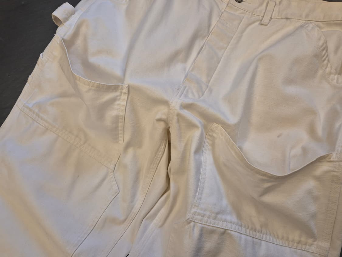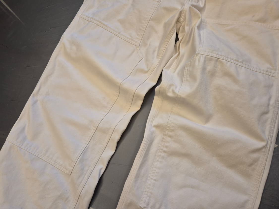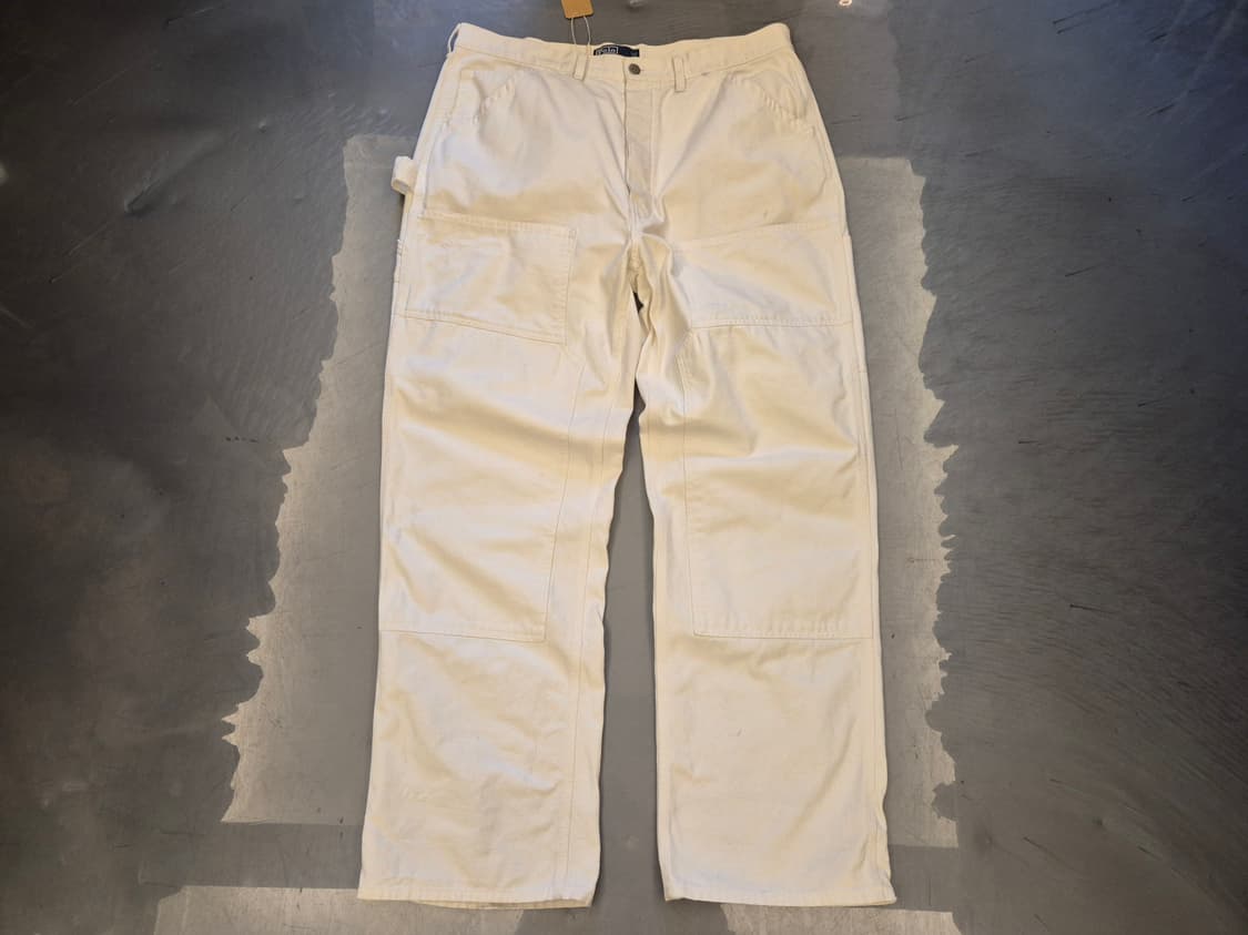 폴로사에서 발매된 화이트컬러의 더블니 팬츠입니다 밀도높고 두께감이있는 원단으로 만들어졌으며 일반 칼하트 더블니에는 볼수없는 포켓형태로 되어있습니다 화이트이다보니 여기저기 오염있으니 사진 참고 바라며 워크웨어로 입는거다보니 더 더티해져도 멋질거 같네요 표기 36 실측은 크게나와 38에 해당됩니다 《사이즈》실측 38 《허리》48 《허벅지》36 《밑위》34 《밑단》25 《총장》110 *빈티지,세컨핸즈 특성상 교환,반품 어려우니 신중한 구매 부탁드립니다*