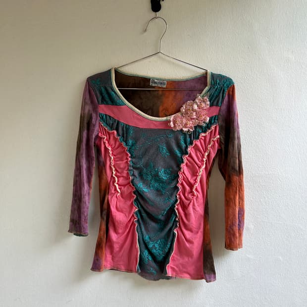 Oriental beads prinrimg ruffle longsleev