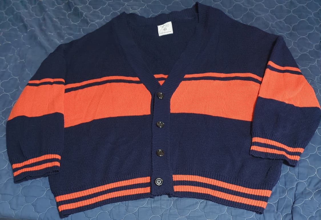 • 빅 오버핏 배색 니트 가디건 네이비 (XXL)
