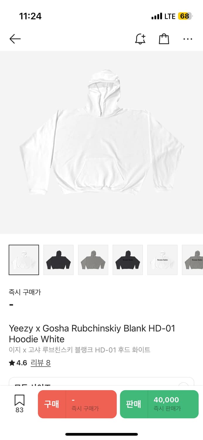 • [3] 이지(yeezy)x 고샤 트리뷴 헤럴드  후드 화이트 HD-01