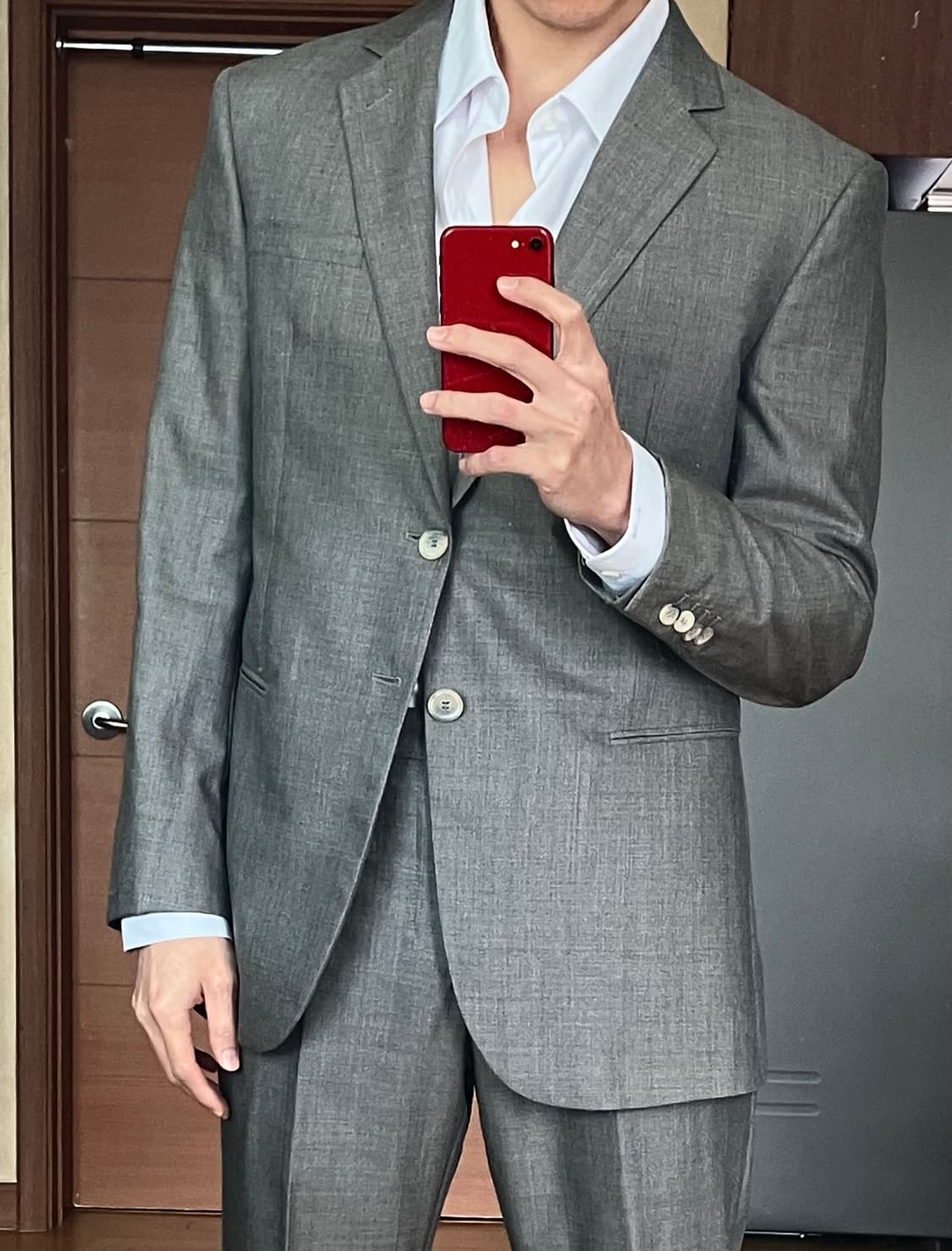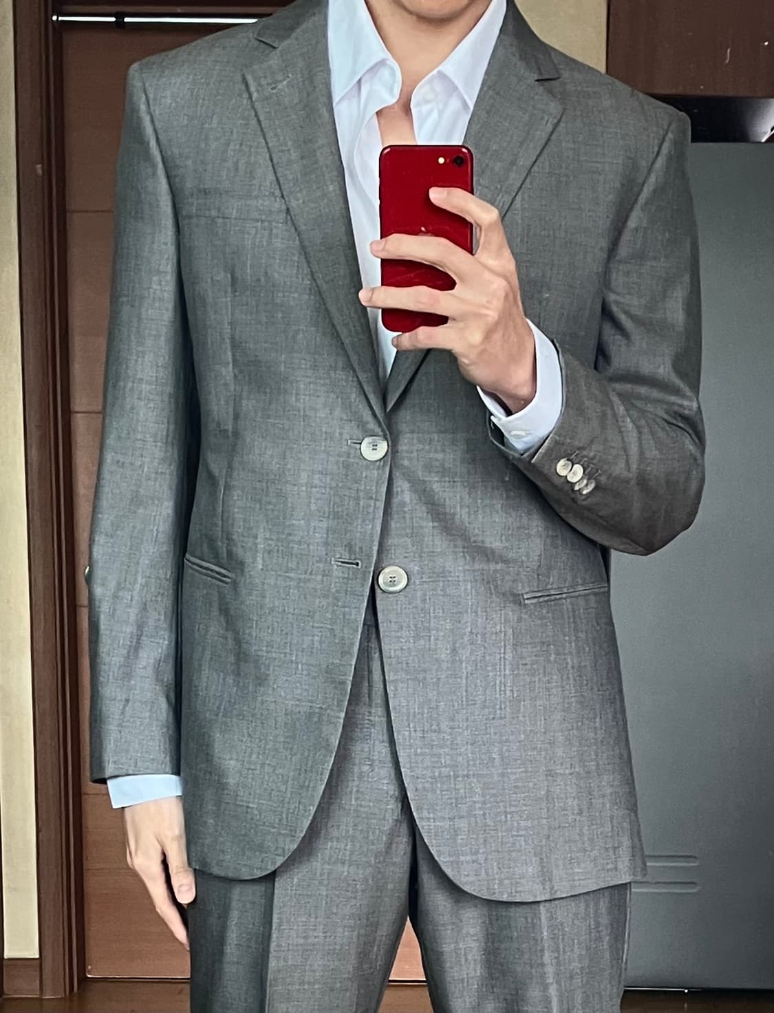 자칫하면 촌스러워 보일 수 있는 컬러인데 실크 블렌드로 고급스럽고 우아한 느낌이 들어요 개인적으로 기본 슈트는 네이비 다음으로 그레이 컬러라고 생각해서 여기저기 활용하기 좋을 거 같아요