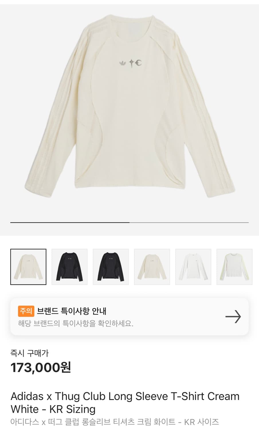 • [M] 아디다스 x 떠그클럽 롱슬리브 티셔츠 크림 화이트