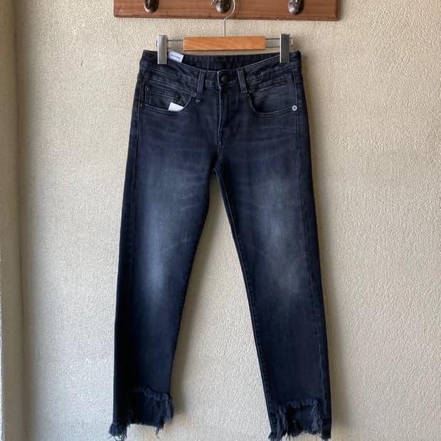 상품명:(정품)R13데님팬츠 사이즈:25-26(허리단면36 총장82) 색상:연청 컨디션:10/9 상세설명:R13데님팬츠입니다. 크롭팬츠로 발목위까지오는길이감입니다. 핏은 스트레이트핏(일자핏)으로 다가오는,봄,여름 실용적으로 잘 활용하실수있는 데님팬츠입니다. 살짝롤업해서입으셔도 예쁩니다. 옷컨디션좋습니다.