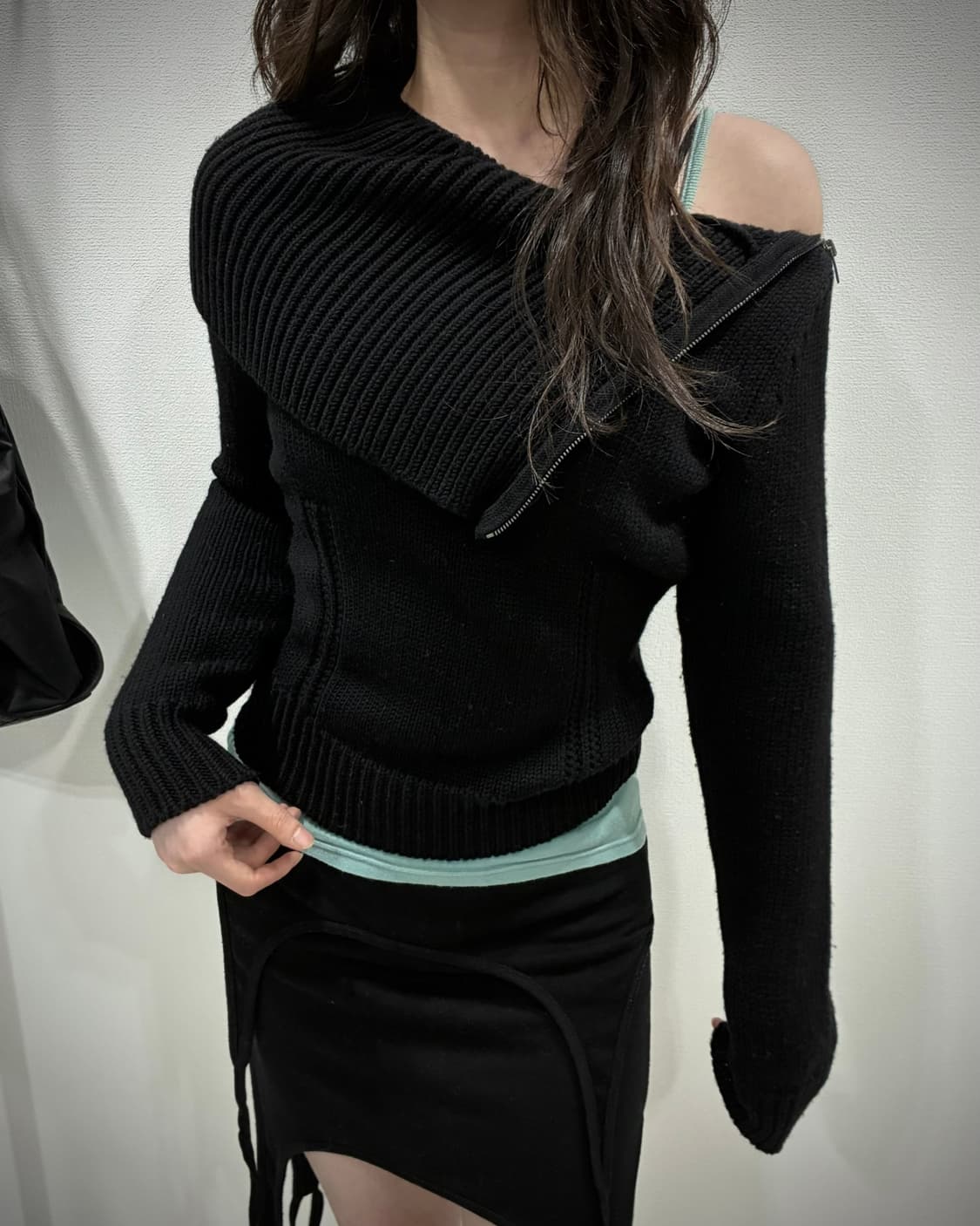 셀린느는 프랑스를 대표하는 럭셔리 패션 하우스로, 특히 에디 슬리먼 부임 이후 파리지앵의 시크함과 락시크 무드가 결합된 독보적인 스타일을 선보이고 있습니다. 미니멀한 디자인 속에서도 소재의 고급스러움과 완벽한 핏을 추구하여 전 세계적인 팬덤을 보유하고 있습니다. 어깨 라인을 우아하게 드러내는 보트넥 디자인의 니트입니다. 신축성이 좋은 골지 짜임이 몸매를 탄탄하고 부드럽게 감싸주며, 오프숄더 형태로 연출했을 때 셀린느 특유의 가녀리면서도 세련된 무드가 극대화됩니다. 소매가 길게 제작되어 여리여리한 실루엣을 만들어주며, 기본 블랙 컬러라 어떤 아이템과도 완벽하게 어우러지는 하이엔드 데일리 아이템입니다