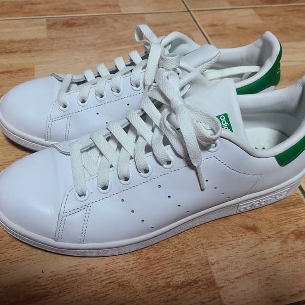 이디다스 스텐스미스 made in cananda 모델입니다 80-90년대 짧은기간동안만 생산된 모델로 80년대와 90년데 스텐스미스의 특징을 고루 갖추고잇습니다 전체적으로 라운드쉐입에 토박스는 낮은편이고 부드럽고 튼튼한 가죽을 사용해서 내구성도 좋습니다 어떤 스타일에도 잘어울리는 클레식한 디자인입니다 뒷축무너짐도 없고 컨디션은 괜찮은편이라고 생각합니다 텅부분에 크랙이 조금 보이는데 착용에는 지장없어보입니다 사이즈 US9입니