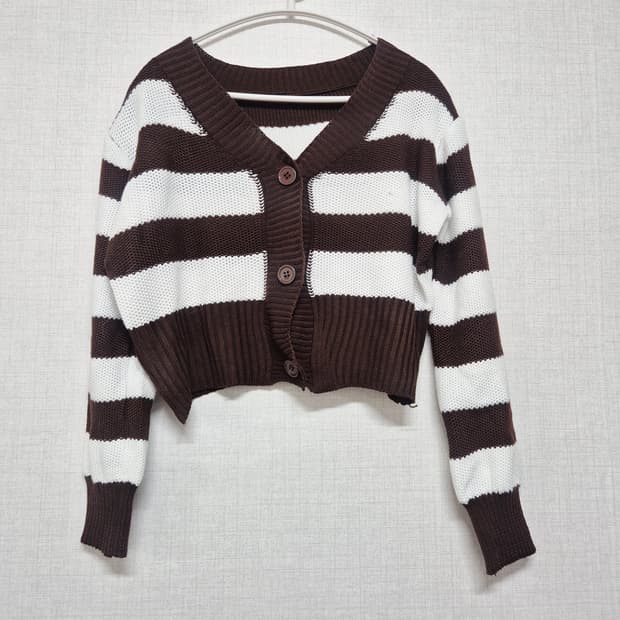 「U.G.COLLECTION」 V-neck stripe loose knit P/O • Made In JAPAN • 오묘한 짜임이 있는 니트 • 소재 특유의 보송보송한 터치감이 있는 볼륨있는 질감 • 빈티지한 무드의 톤 다운된 컬러 • 단정한 느낌의 스트라이프 패턴 • 느긋한 여유를 가진 오버 실루엣 Color | Brown Fabric | 큐프라 45% 나일론 30% 울 25% Size | F 어깨 | 54.5 cm 가슴 | 62 cm 소매 | 66 cm 총장 | 77 cm Model | 174 cm 63 kg