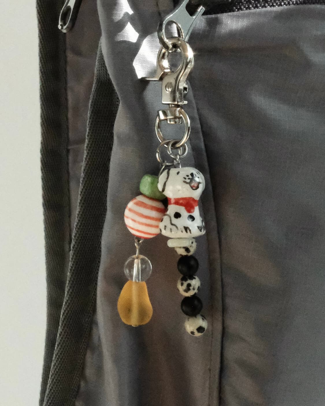 작은 오브제 하나로 일상에 가볍게 더해지는 포인트. 유리처럼 맑은 분위기에 달마시안의 개성이 더해진 포드메르의 미니 키링입니다. material 메탈, 글라스, 달마시안, 오닉스, 체코비즈, 백수정 총 길이(고리포함) 9cm © POT DE MER. All rights reserved.