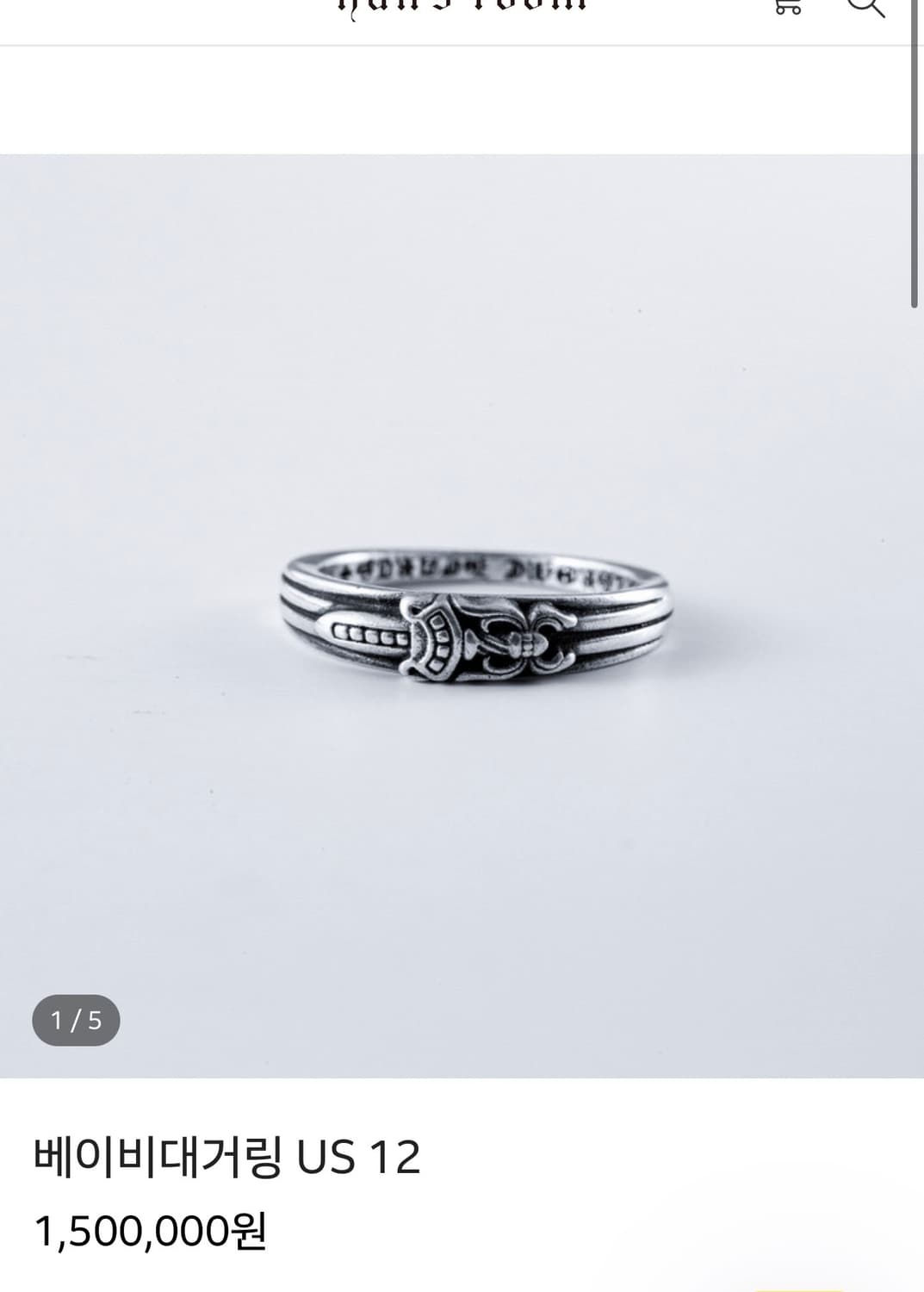 크롬하츠 베이비대거링 US7.5 사이즈입니다. 한스룸에서 구매하였고 한스룸 정품 보증서도 같이 드립니다 구매한날짜는 26년 1월 31일입니다 구매하고 나서 몇일뒤에 커플링으로 베이비플로랄링을 구해서 두세번만 착용하고 케이스에 보관중입니다 많은 문의부탁드립니다
