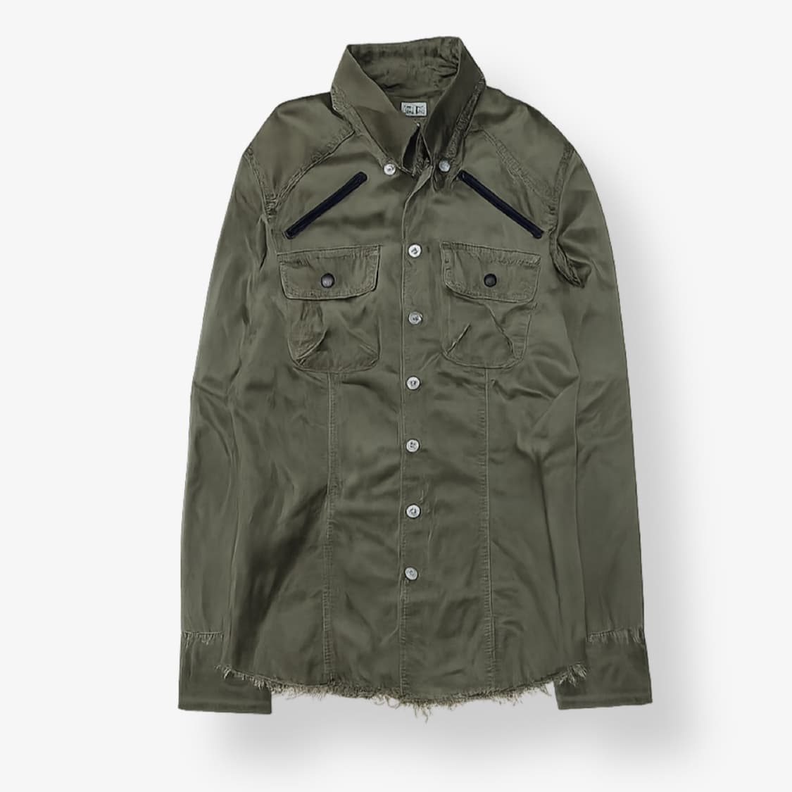 Size 1 • 270,000 • L.G.B (Le Grand Bleu) by Nobushiko Sato • 르그랑블루의 디스트레스드 컷오프셔츠 • 시그니처 절개 셔츠 라인 • 에이징을 먹은 듯한 독특한 광택감 • 밑단의 러프한 컷오프, 탈부착 넥 칼라 • 독특한 절개의 요크 라인, 링 디테일 (cm) 어깨 43 가슴 48 길이 68