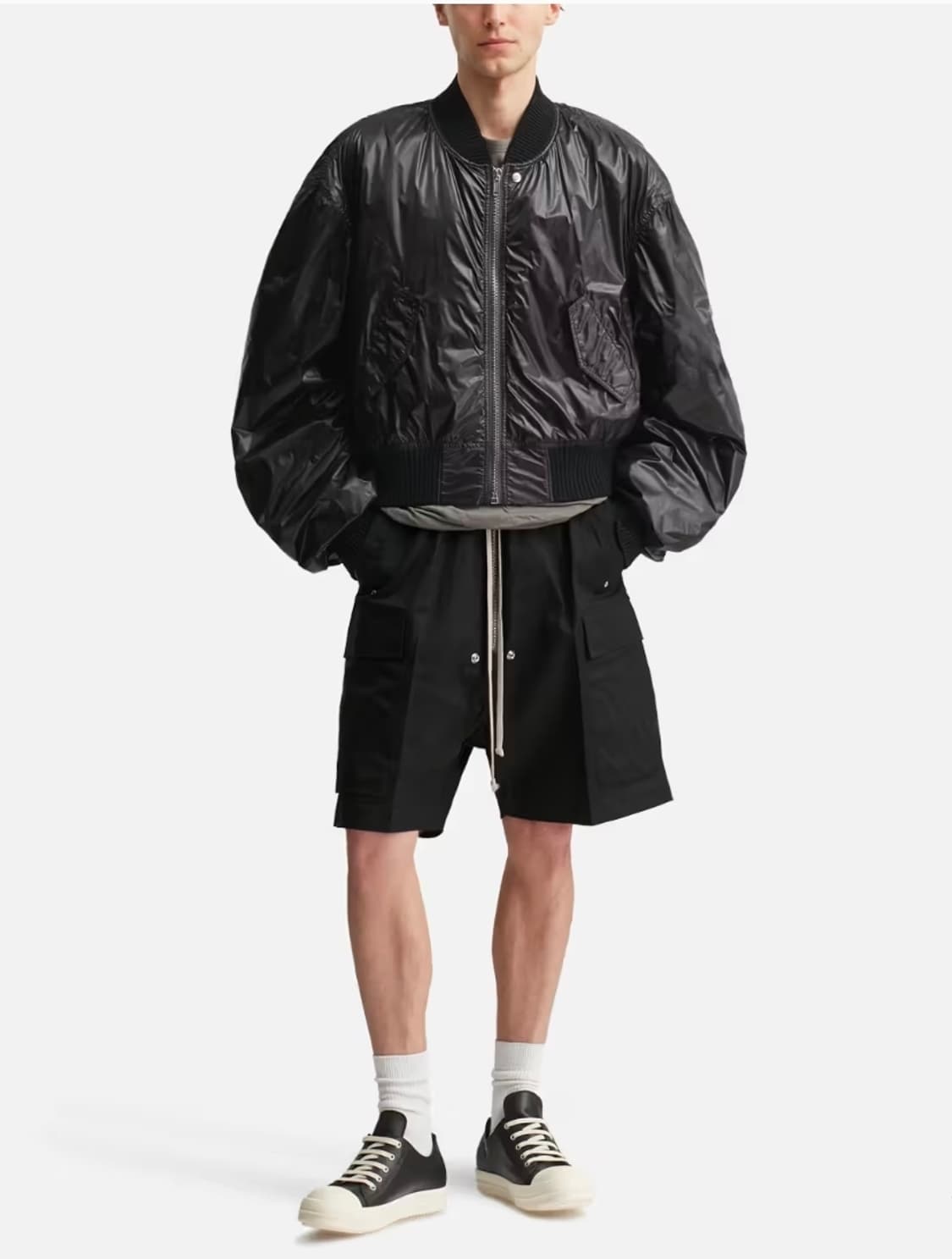릭오웬스 SS26 TEMPLE 세키아 플라이트 NPS 48사이즈 이번 TEMPLE시즌 메인 디자인중 하나인 세키아 봄버 입니다. 최근 릭오웬스가 주력으로 밀고 있는 지금의 릭 감성 봄버 디자인입니다. 셔링된 슬리브의 커브되고 과장된 볼륨으로 조형미가 너무 이쁩니다. 실물이 훨씬 예쁜 자켓으로 다양한 하의와의 활용도 좋습니다. 새상품으로 봐도 무방한 상태