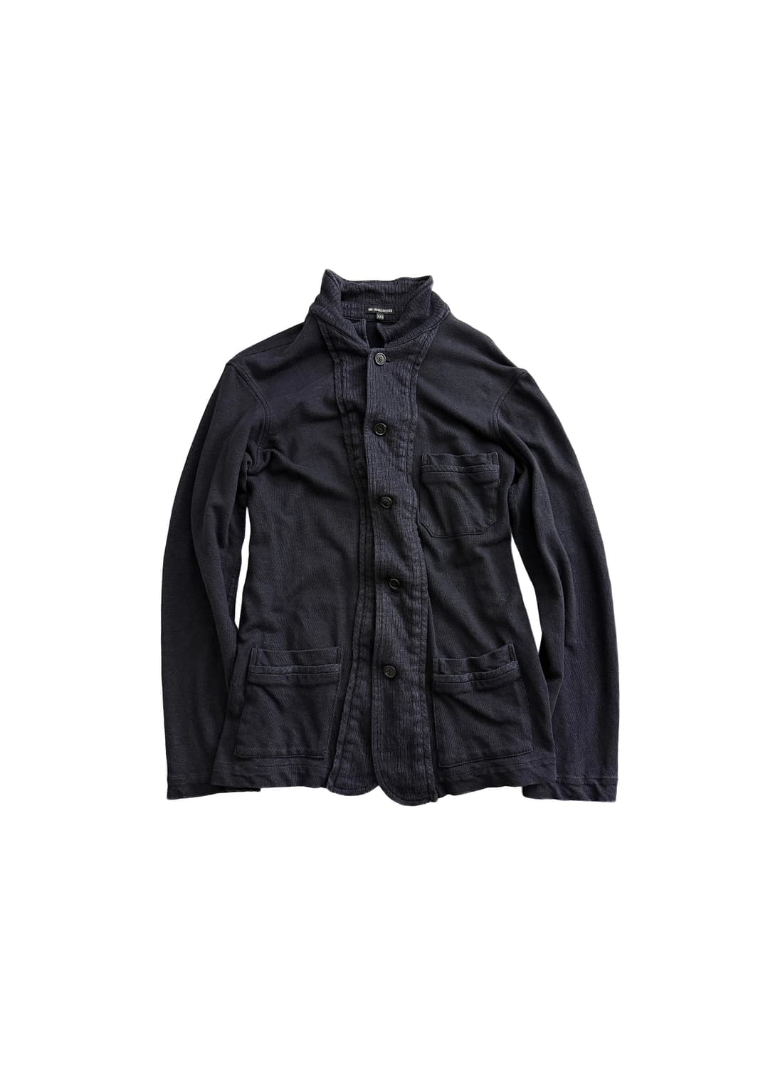 Ann Demeulemeester rib-panel knit cardigan 가디건의 유연함과 테일러드 자켓의 구조적 미학이 결합된 피스로, 린넨 혼방의 탄탄하고 밀도 높은 조직감이 실루엣을 견고하게 잡아주어 흐물거리지 않는 적당한 무게감을 선사합니다. 특히 자켓 전면을 가로지르는 입체적인 리브 패널 디테일이 라펠처럼 존재감을 드러내며, 체코 메이드의 견고한 만듦새와 슬림한 피팅감이 어우러져 브랜드 고유의 중성적인 무드를 완성합니다. • size: XXS (KR 95) - chest: 49, length: 70, shoulder: 45, sleeve: 59 • condition: 8/10 • material: 35% cotton, 65% linen ※ 왼쪽 소매 끝단에 미세한 핀홀이 존재합니다.