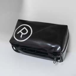 3/4에 구매한 미사용품입니다. 하얀색 제품 택이 그대로 있으며 시리얼넘버 스티커도 붙어 있습니다. 등록상표로고 ®가 올블랙 타프 위에 인쇄된 희귀한 파우치입니다. 제품 특성상 구매하신 이후 반품은 불가합니다.