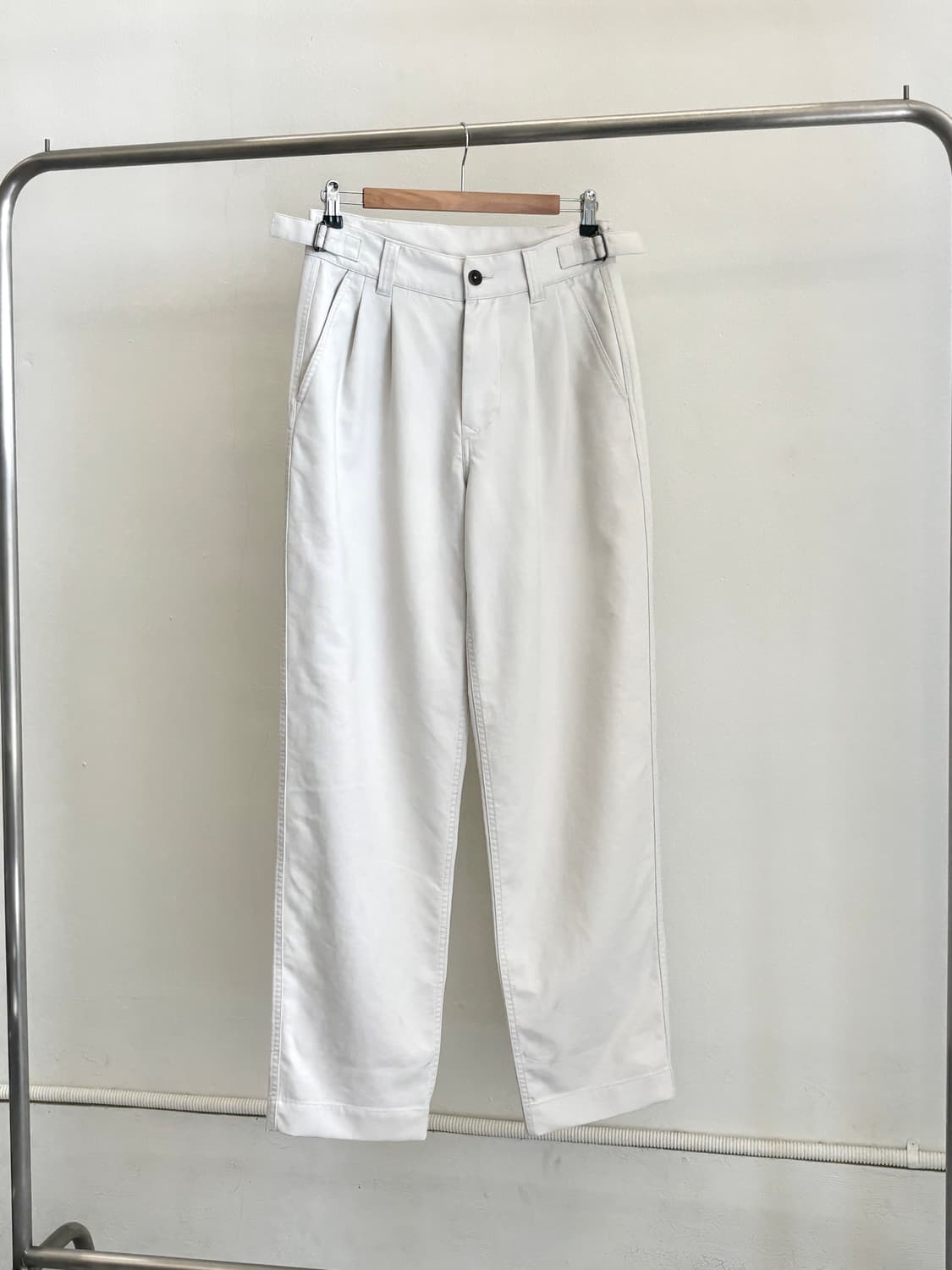 MHL Cotton Two-Tuck Pants (White) Condition : A-B ( 밑단 미세오염 ) Size : S ( 총장 109 허리 38 허벅지 34.5 밑단 20.5 Detail - 코튼 소재, FW 두께감 - 허리 조절 스트랩, 투턱 팬츠 • Used 제품 특성상 교환, 환불이 불가합니다. 컨디션에 민감하신 분들께서는 신중한 구매 부탁드립니다.