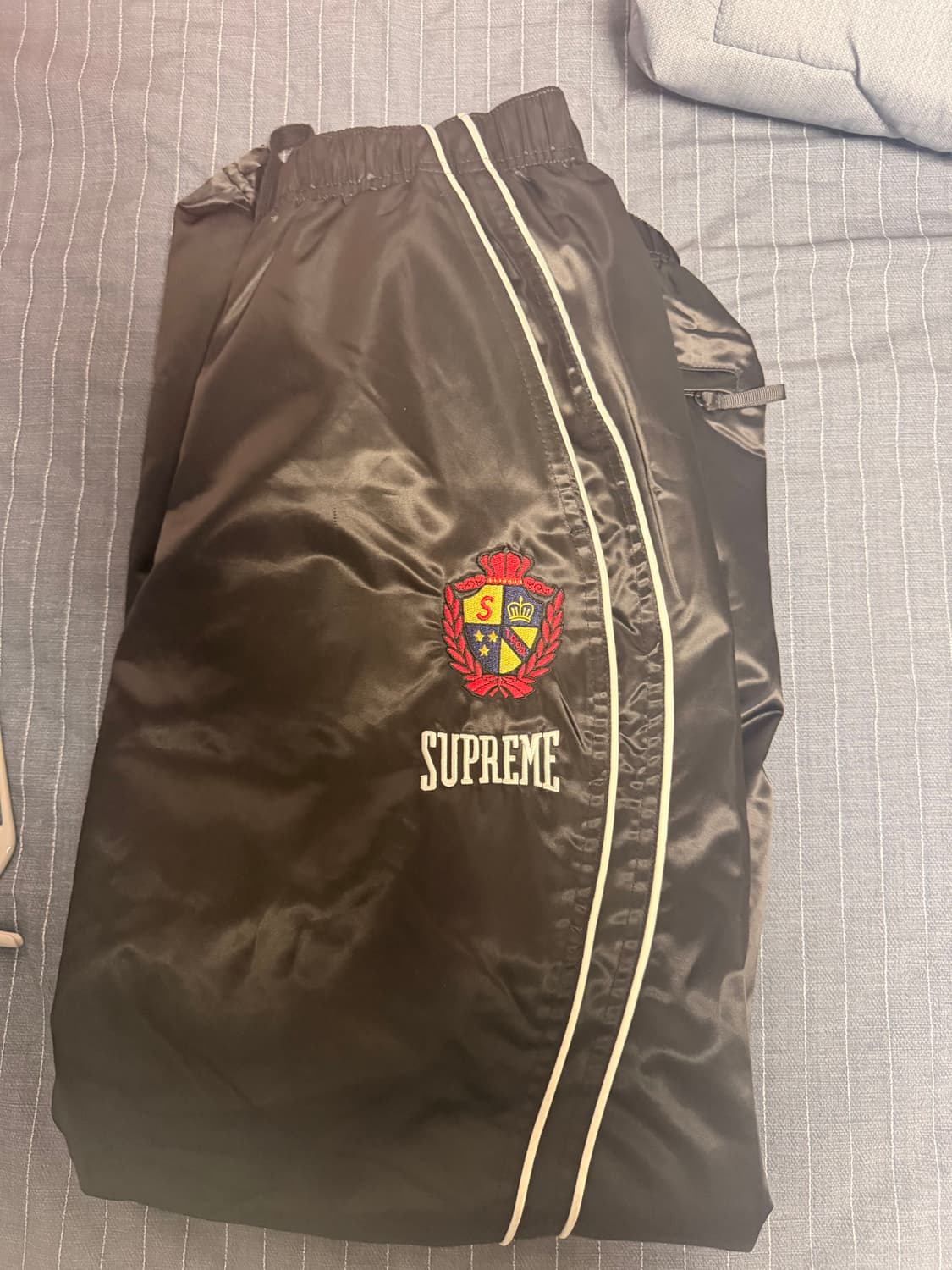슈프림 25SS 사틴 트랙 팬츠 블랙 판매합니다 사이즈 M 정품입니다! 10회 미만 착용 비닐 같이 보내드립니다! 자세한 사진은 연락주시면 보내드려요!