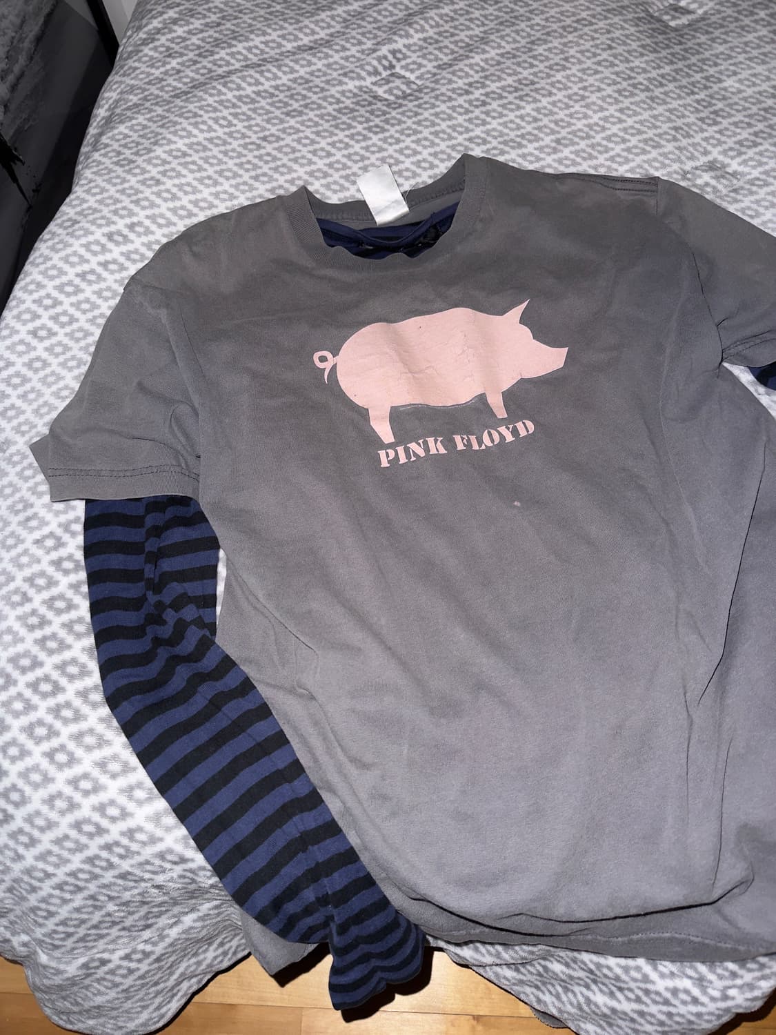 전체적인 페이딩 색감과 돼지 프린팅이 매력적인 티셔츠 녹사평 아카이빈 구매 상품. ANIMALS 앨범 홍보 당시 초대형 돼지 풍선을 런던 상공에 띄웠고 이후로 돼지는 PINK FLOYD의 대역으로도 자주 쓰이게 되었습니다. 조지오웰의 소설 동물농장에서 영감을 받은 것으로 알려져 있으며 돼지는 부패한 권력층을 상징하는데 ANIMALS에선 이를 풍자하는 장치로써 사용됩니다.