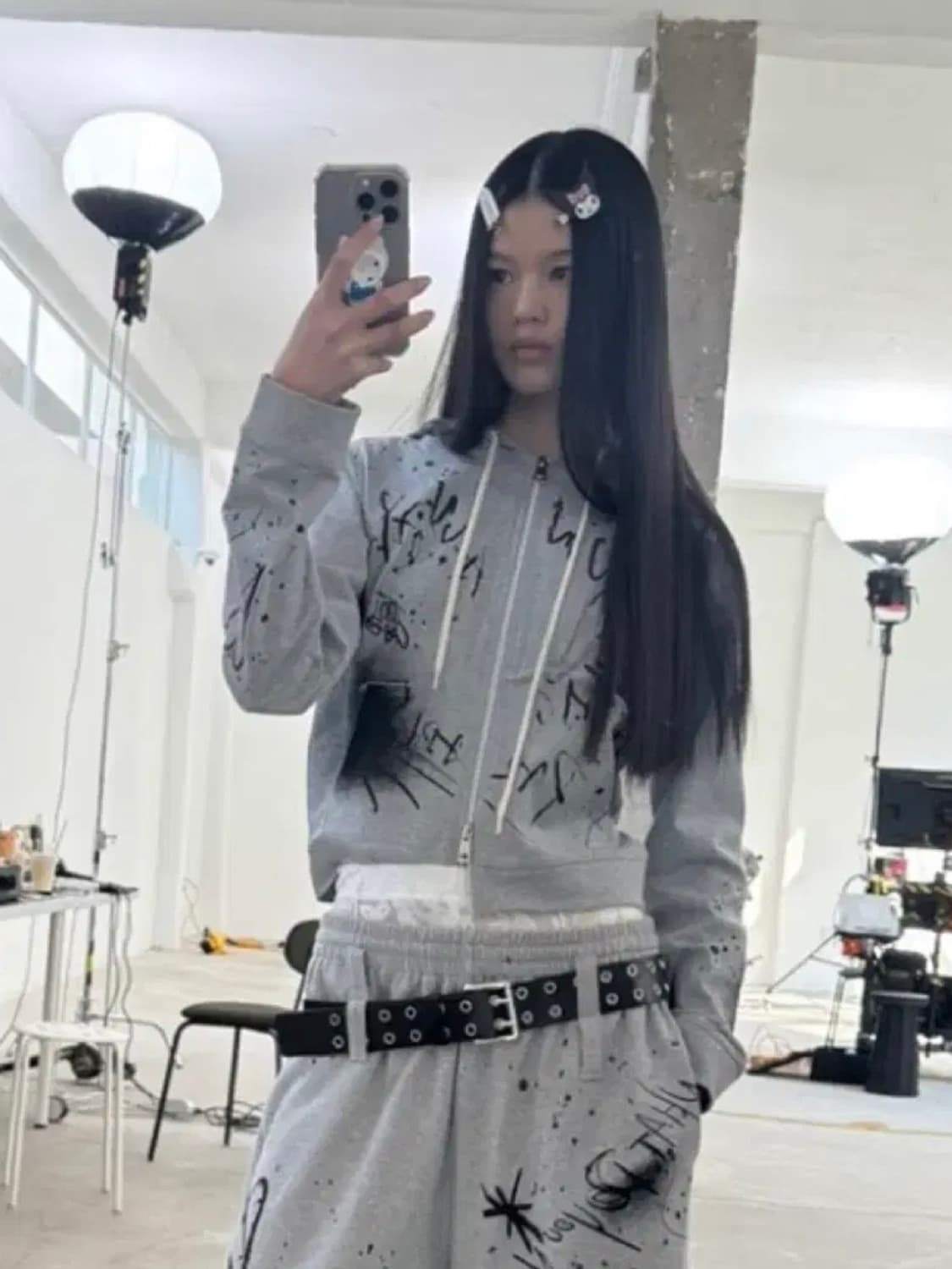 Dared 데어드 백 스터드 후드집업 그레이