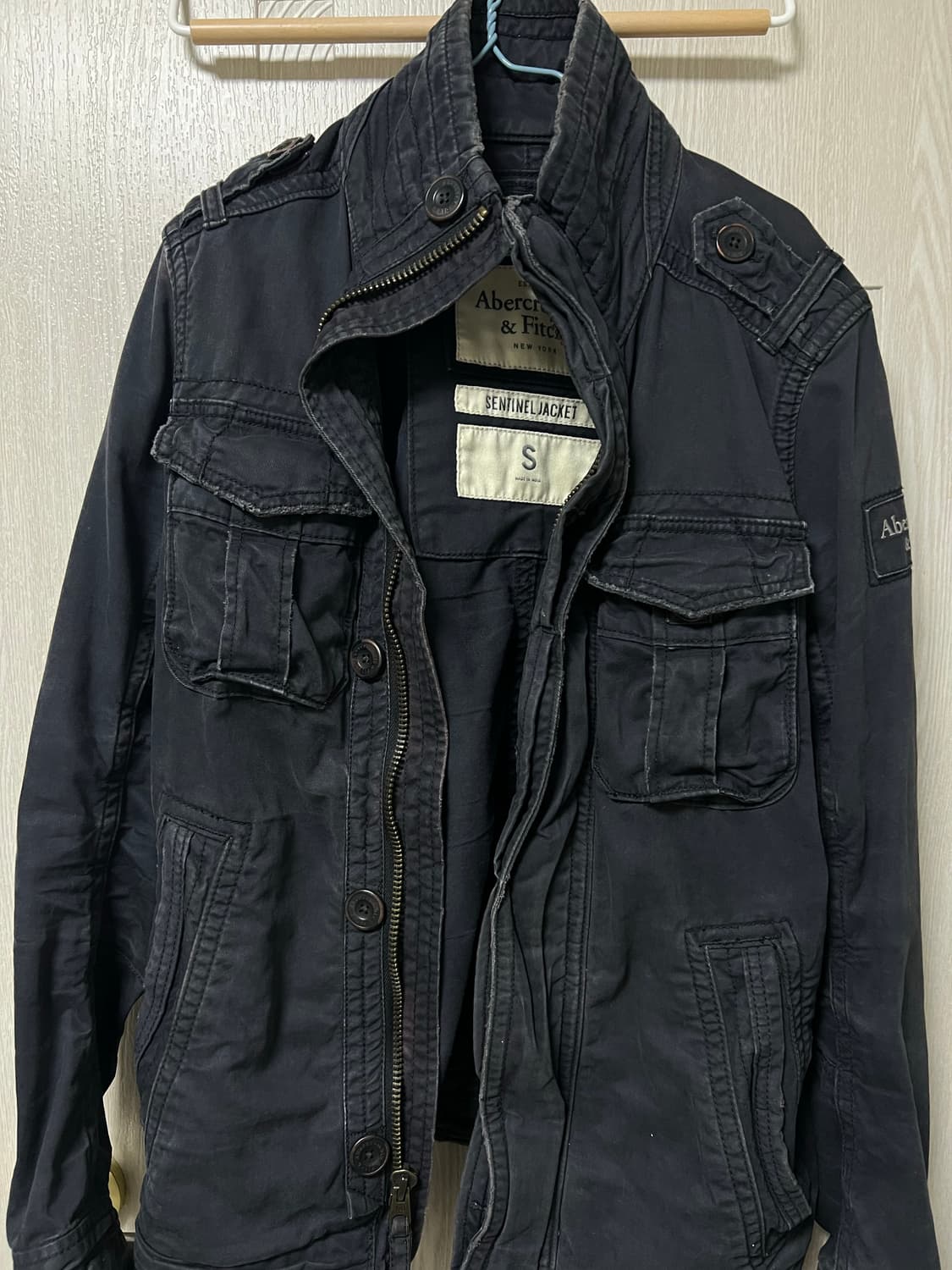 빈티지로 구매한 아베크롬비 자켓입니다 모양이 예뻐서 구매했는데 빈티지를 즐겨입는 편이 아니라 판매해요 구매 후 한 번도 입지 않았습니다 빈티지 특유의 워싱감이랑 해짐이 있어서 이런 부분 별로 신경 안 쓰시는 분들에게 추천드려요!