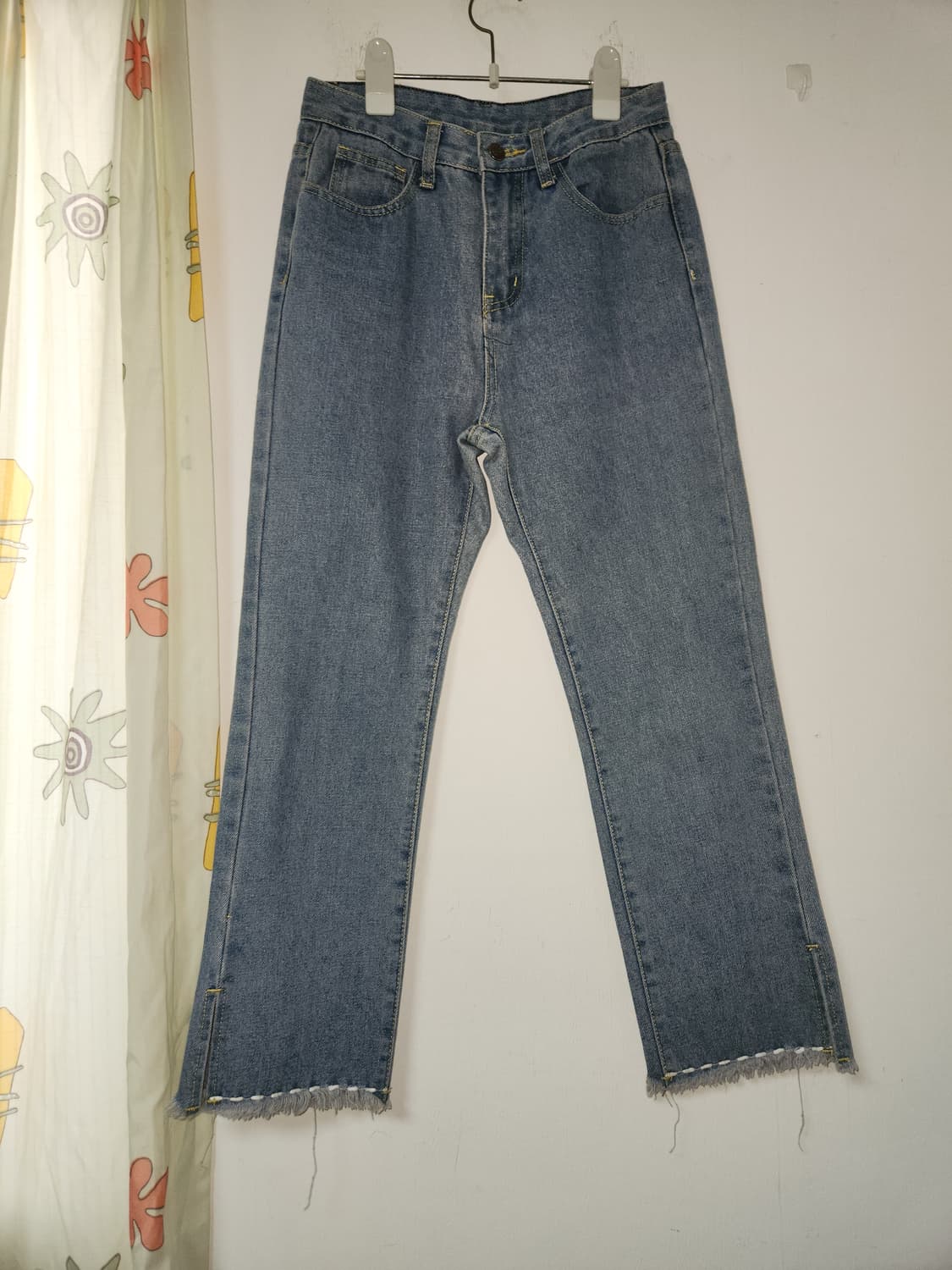 밑단 컷팅 굵은 스티치 장식이 포인트인 데님 청바지입니다. S사이즈이며, 일자핏으로 떨어지는 디자인입니다. 스티치 디테일이 들어가 있어서 더욱 예뻐요. 허리반품 33센치 옆구리기장 89센치 밑단 19 별도 문의 없으시면 바로 안전결제 부탁드려요!