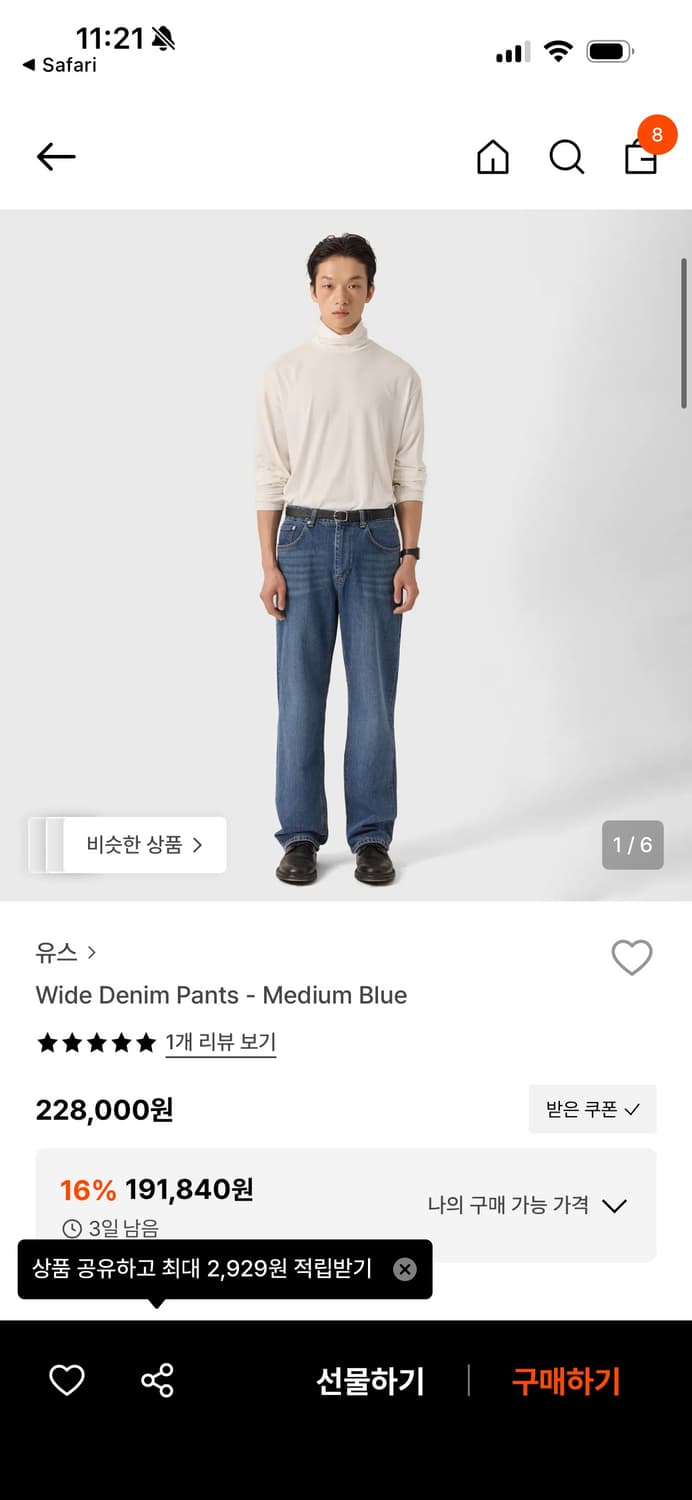 아트이프액츠 빈티지와이드 데님팬츠 워시드블루 S