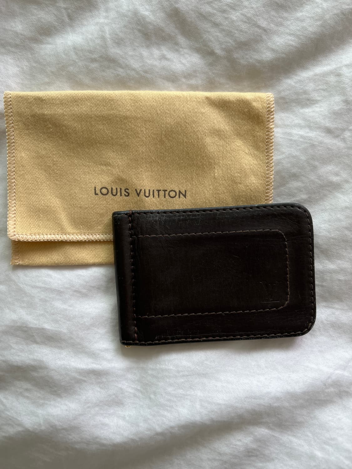 루이비통 머니클립입니다 클래식한 디자인으로 오랫동안 사랑받는 제품입니다 - 가죽 소재로 고급스러움을 더했습니다 - 카드 수납 공간과 머니클립 기능으로 실용적입니다 사용감은 있지만 전체적으로 양호한 상태입니다 짙은 브라운 색상의 부드러운 가축소재입니다. 구매시 이니셜 각인 서비스 해준다고해서 L.D.C 이니셜이 각인되어 있어요. 신세계 센텀점에서 구입했습니다. 사용감 있어요. 반품 안됩니다. 신중한 구매 부탁드립니다.