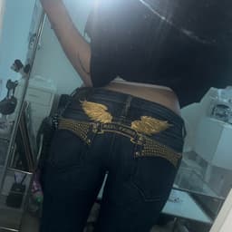 26사이즈라서 진짜 터질거같아서 팝니다.. 완전 딱붙는 스키니 핏이라 롱부츠 같이 입으먄 이뻐염!! 골드윙 스티치 뒷면이랑 앞면 옆포켓에 있고 큐빅도 빠짐 없이 상태 좋아요 진짜 이뻐염!!!😱😱