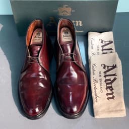 [10D] 알든 1339 컬러8 코도반 처카 부츠 (Alden 1339 Color 8 Cordovan Plain Toe Chukka Boot) *상세정보: - Barrie Last - Commando Outsole - 360 Pre-Stitched Reverse Welt *구성품: - 구두 본품 및 알든 더스트백 포함 - 우든 슈트리, 알든 박스 등 기타 구성품 미포함 *기타 안내: - 기본 케어가 완료된 상태로, 수령 후 곧바로 착용하실 수 있습니다. - 중고 제품 특성상 주름이나 기타 사용감이 있을 수 있으며, 이로 인한 환불은 불가하오니 예민하신 분께는 새 제품 구매를 권장드립니다. - 보다 정확한 사이즈 선택을 위해 양발 중 큰 발의 길이와 폭을 측정한 후, 구매를 원하는 모델명과 함께 Gemini에 문의해 주세요. #알든 #Alden #코도반