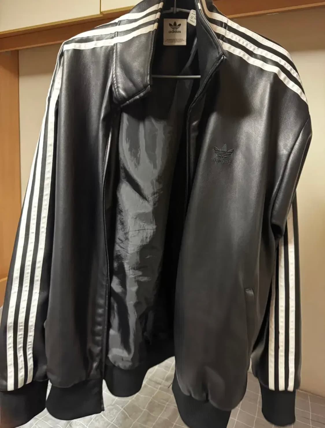 구하기 힘든 아디다스 레더 자켓입니다 크림에서 450,000원에 판매되고있습니다 이옷 정말 소중히 입어서 가죽 구겨짐이나 찢김 하나도 없습니다 2XL사이즈 엄청 레어하고 세미오버핏이라 아이돌 분들이나 연애인들이 많이 착용한 제품이에요 주변 친구들이 입을때마다 항상 칭찬한 제품입니다 제가 180 71kg인데 2XL 살짝 오버하게 잘 맞습니다