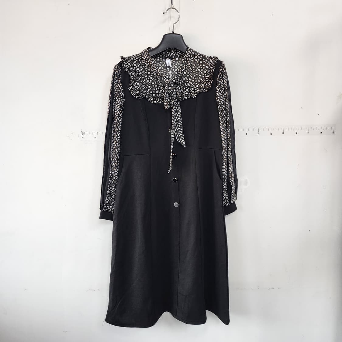 블랙 색상의 쉬폰 배색 레이어드 원피스입니다. 리본으로 포인트를 줘서 러블리한 느낌을 연출할 수 있습니다. 데이트룩이나 하객룩으로도 활용하기 좋을 것 같아요! 별도 문의 없으시면 바로 안전결제 부탁드려요! 반품/교환/환불❌️
